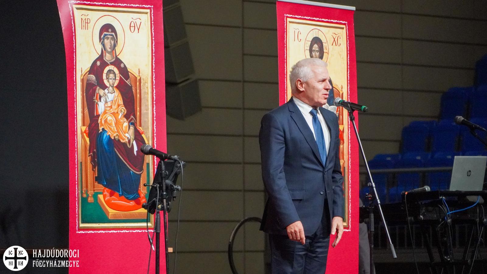 A főpásztor prédikációjában hangsúlyozta, hogy a vámos és farizeus vasárnapjával elkezdődik nagyböjtre való készület, így ez a nap mint egy utolsó lehetőség állt előttünk, amikor még egy nagyot mulathatunk. Fülöp atya bátorította a jelenlévőket, hogy a bált ugyanazzal a lelkülettel éljék meg, mint amekkora odaadással nagyböjt időszakában böjtölnek, imádkoznak. Ferenc pápa már évek óta próbálja megértetni a híveivel, hogy mit jelent a szinodalitás fogalma. Fülöp atya arra kérte a résztvevőket, hogy bálozzunk szinodális lelkülettel és böjtöljük majd szintén szinodális jelleggel. És, hogy milyen is a szinodális egyház, arra „görögkatolikus értelmezést adva”, azt mondta „Görögkatolikus egyházunkban oly fontos a család. Nem lehet azt mondani, hogy a kicsi gyerek értéktelenebb lenne a nagynál. Mindenki egyenlő, de szent rend van a családban. Ilyen az egyház is: családias, ahol mindenki fontos, mindenki egyenlő, de szent rend uralkodik. Ilyen családias lelkülettel töltsük a mai estét és az elkövetkező nagyböjtöt is, forrasszon bennünket, görögkatolikusokat egy családdá a családias lelkületű böjtölés!” – zárta szavait Fülöp atya.