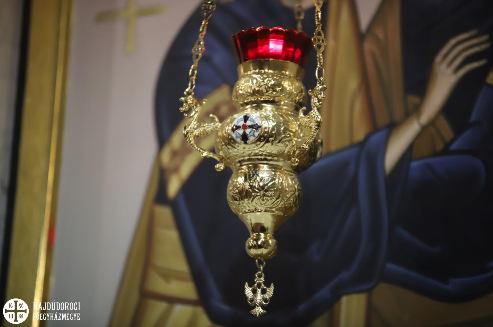 Fedezzük föl, örvendező szívvel adjunk hálát az Úr Istennek ezért a legyőzhetetlen erőért. És adjunk hálát azért is, hogy sok ikonunk van, amelyeket szemlélhetünk, amelyek mindegyike ezt erősíti bennünk. Krisztus leszállt a Földre, egyesült velünk, itt van velünk végérvényesen. Imádkozzunk azokért, akik ezt nem értik! S azokért is, akiket felbőszít a legyőzhetetlen erőnk, akik támadást, támadásokat intéznek a keresztények ellen, dühösek ránk, mert mi Krisztushoz tartozunk. Hiszen éppen ő bátorított minket előre: „Boldogok vagytok, ha miattam gyaláznak és üldöznek titeket, és mindenféle rosszat hazudnak rólatok. Örüljetek és ujjongjatok, mert jutalmatok bőséges a mennyekben. Mi a templomainkban már a mennyben érezzük magunkat. Különösen ebben a szép gödöllői templomban. Talán éppen ezért akarták elvenni tőlünk. Hála Istennek, még ha teljesen elpusztították volna is a templomunkat, a Krisztustól kapott boldogságot elvenni tőlünk lehetetlen.