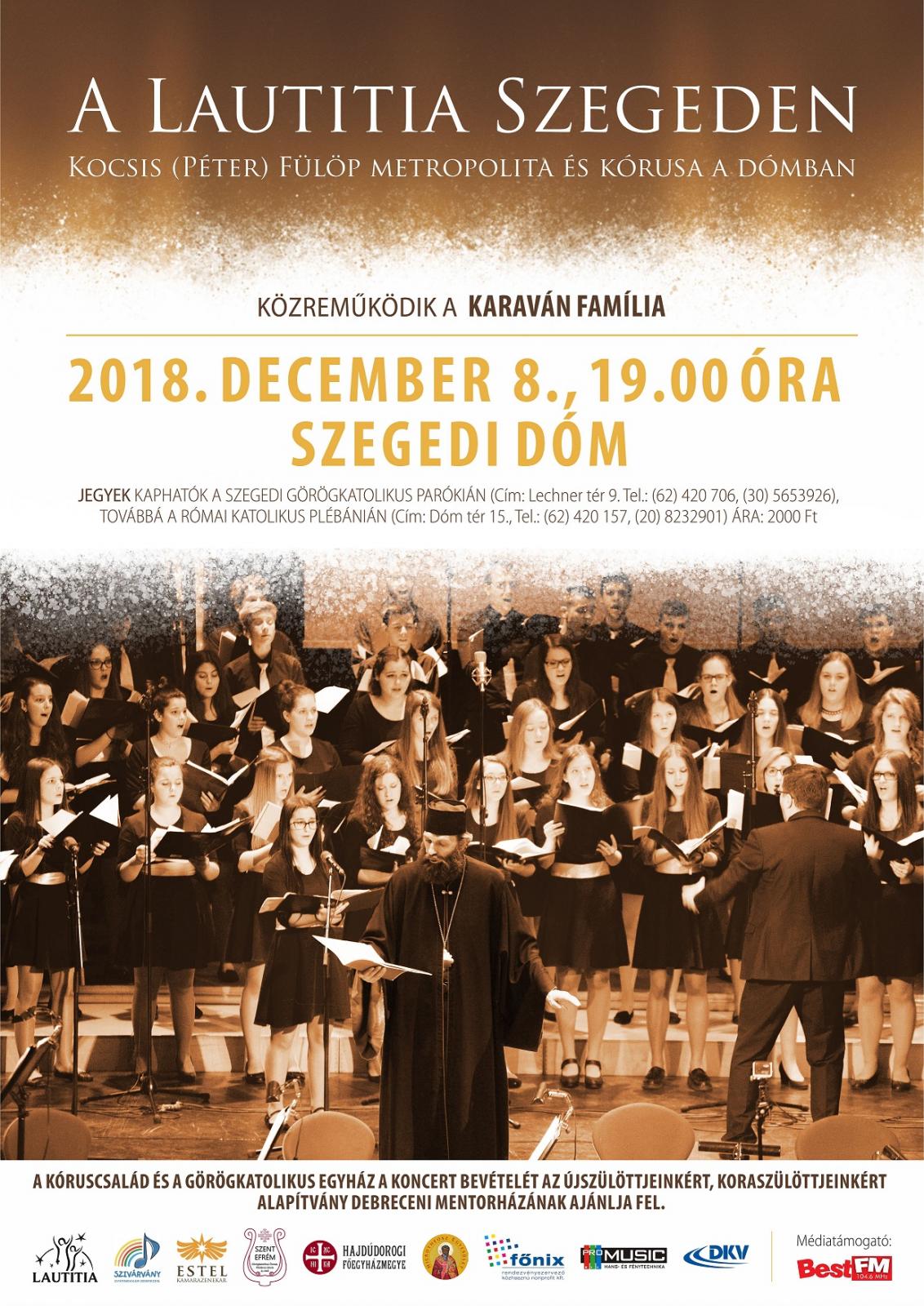 A debreceni Lautitia kóruscsalád immár ötödik éve rendezi meg adventi hangversenyét a debreceni Kölcsey Központban. A koncert minden évben több mint 1400 fős közönség előtt zajlik, az érdeklődők nagy száma miatt dupla koncerttel. Az idén Szegedre is elviszik a hangverseny anyagát. A szegedi koncert megálmodója Kocsis Fülöp érsek-metropolita atya, aki maga is elkíséri az énekeseket szülővárosába.
