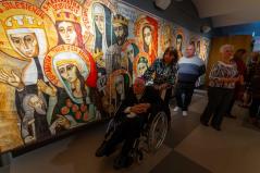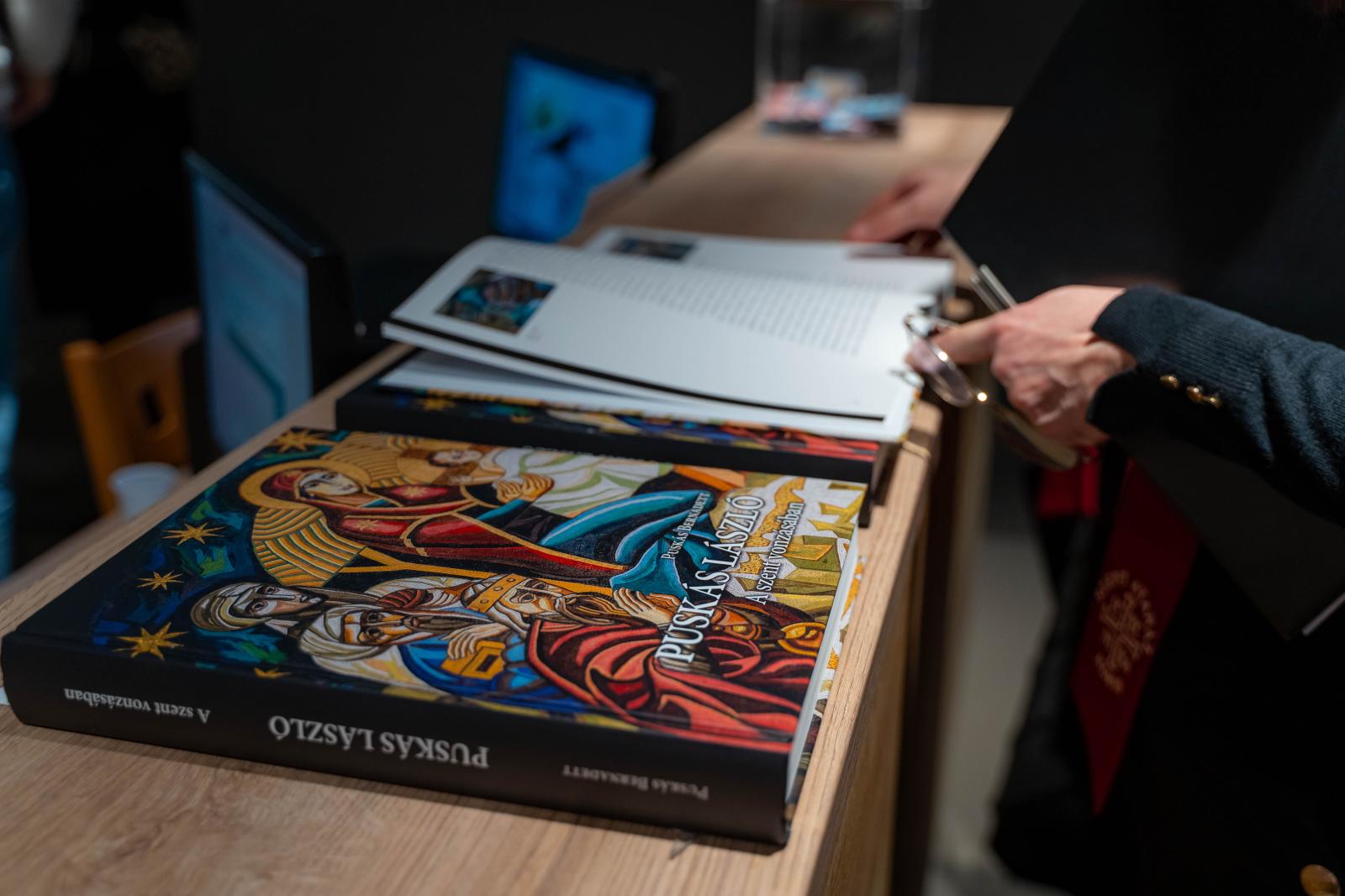 Puskás László művészi pályája 1965-ben, 60 évvel ezelőtt indult. Ekkor fejezte be a Lembergi Művészeti Főiskolát. Feleségével, Nadiával évfolyamtársak voltak, s még diákként kötöttek házasságot. Ukrajnában sikeres pályát futott be, de a szovjet rendszer korlátozó környezetében nem tudta megélni hitét és magyarságát. Az akkor már kétgyermekes család 1974-ben Magyarországra költözött. A művész itt is folytatta alkotói tevékenységét, miközben szabadon gyakorolhatta görögkatolikus hitéletét. Elnyerte a Derkovits-ösztöndíjat, műveit kiállításokon láthatta a közönség. Elvégezte a Pázmány Péter Teológiai Akadémia levelező tagozatát, ezután szentelték pappá. Felhagyott a világi festészettel és csak egyházi felkéréseket vállalt. Első megbízói között volt Szarka János atya, aki személyesen is tiszteletét tette a kiállításon. Összesen 11 görögkatolikus templomban készített falképeket, 16 mozaikmű, több ikonosztáz és ikon is fűződik a nevéhez.