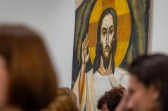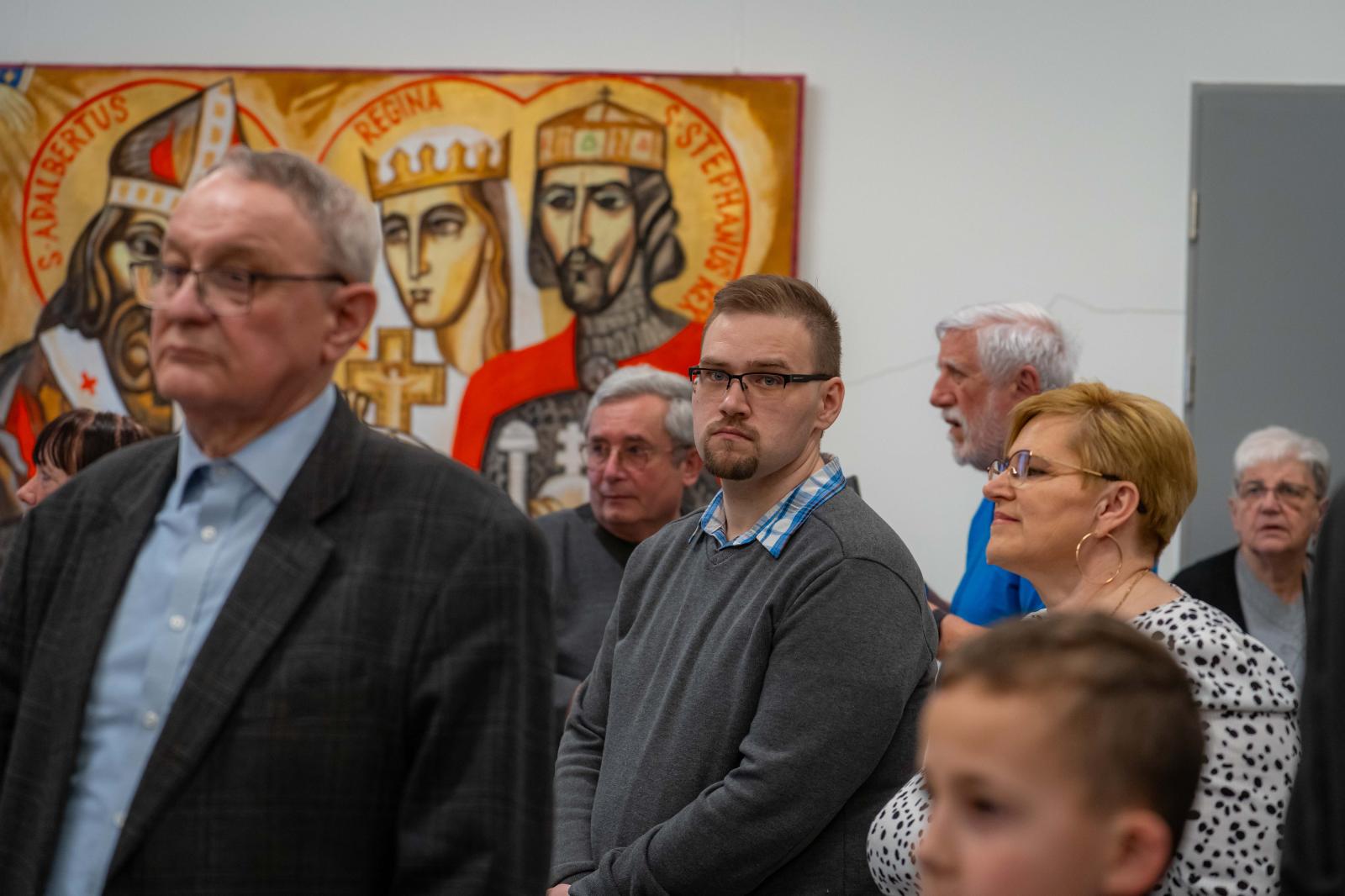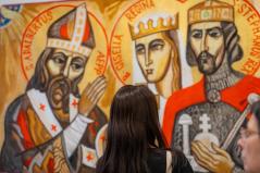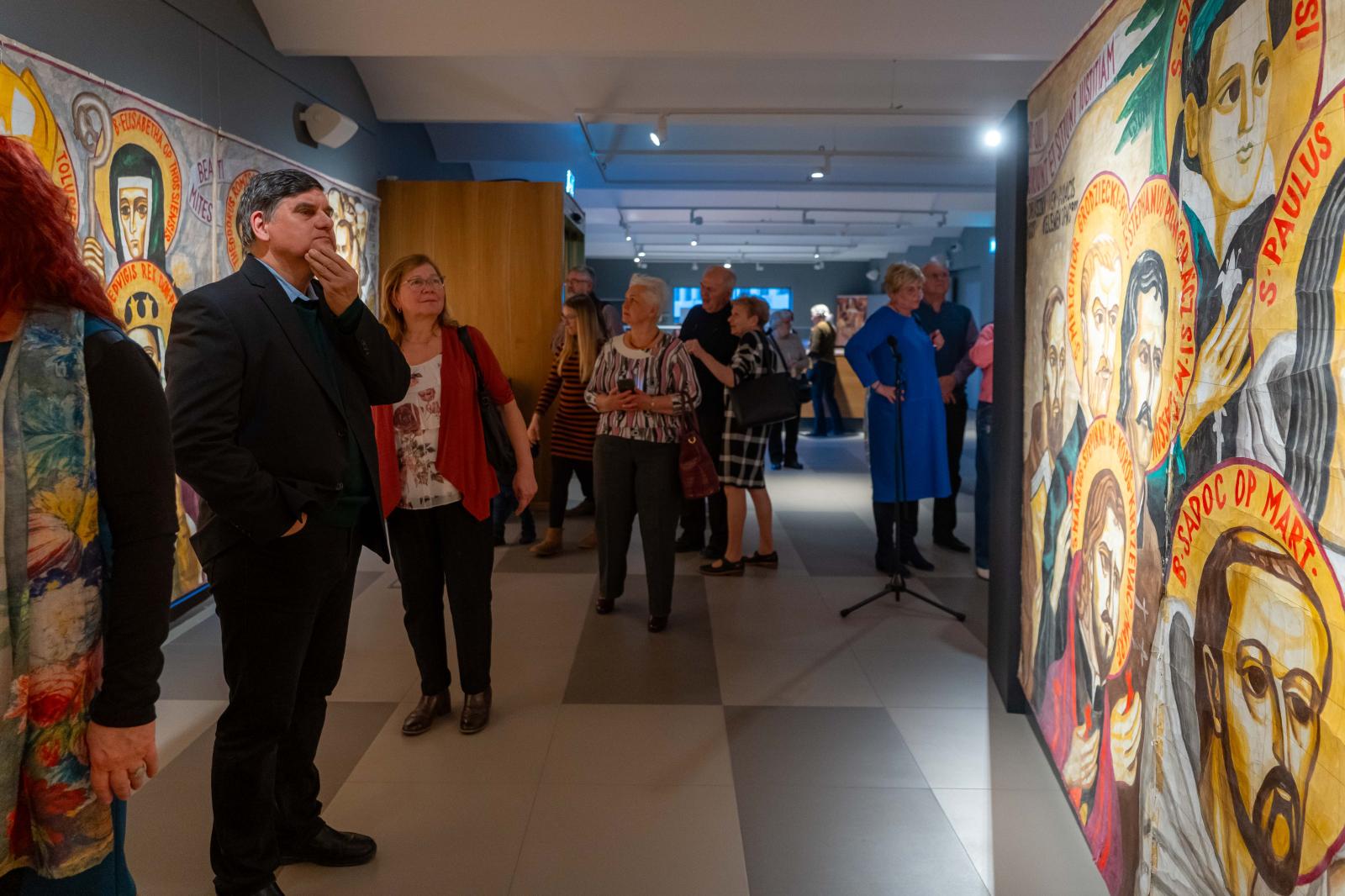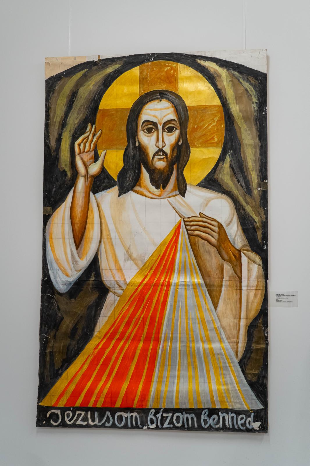 A kiállítás önálló részét képezik a krakkói Isteni Irgalmasság-bazilika Szentek Közössége magyar kápolnában látható mozaikokhoz készült 1:1 arányú festőkartonok. Az ábrázolásokon többek között Szent István királyt, Boldog Gizellát, Skóciai Szent Margitot, Portugáliai Szent Izabellát, Boldog Romzsa Tódor, Chira Sándor és Orosz Péter vértanút, illetve id. Puskás Lászlót láthatjuk.