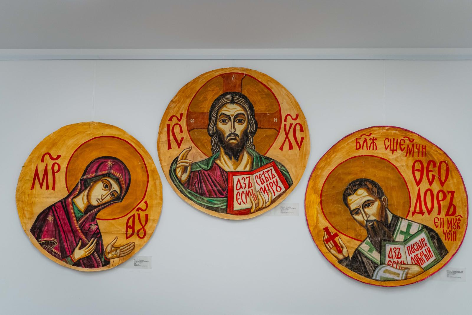 A kiállítás harmadik részében templomi mozaikkartonokat és más szakrális témájú munkákat állították ki. Az érdeklődők megtekinthetik a bökönyi görögkatolikus templom, az ungvári görögkatolikus székesegyház és az osli római katolikus templom homlokzati mozaikjának 1:1 méretarányú kartonját. Itt látható Boldog Romzsa Tódor kegyikonja is, mely a főalak körül a munkácsi vértanú püspök élettörténetét jeleníti meg születésétől papszentelésén át boldoggá avatásáig. A kép magában rejti a vértanú ereklyéjét is.