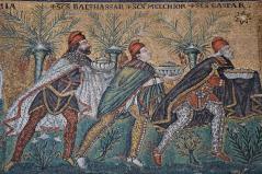 A háromkirályok imádása a betlehemi csillaggal a ravennai Sant Apollinare Nuovo bazilika mozaikján (6-7. század)