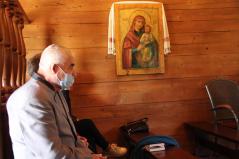 Ugyancsak alapkép az Urunk mennybemenetelét ábrázoló ikon. Ez a kápolna címünnepe. Más években is nagyon családias volt a fatemplom búcsúja. Idén meg aztán különösen, hisz nehéz ezen a piciny helyen az egészségügyi előírásoknak megfelelő, fegyelmezett magatartással jelen lenni. Áldozócsütörtökön ezért szűk körben ünnepeltek a szerzetesek. Rajtuk kívül, Adeus Illés atya meghívására, csak a Máriapócson szolgáló atyák és családtagjaik voltak jelen, s a bazilita harmadrendet is csupán néhányan képviselték.