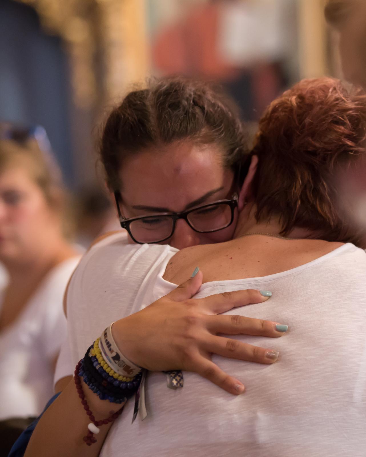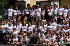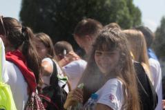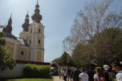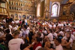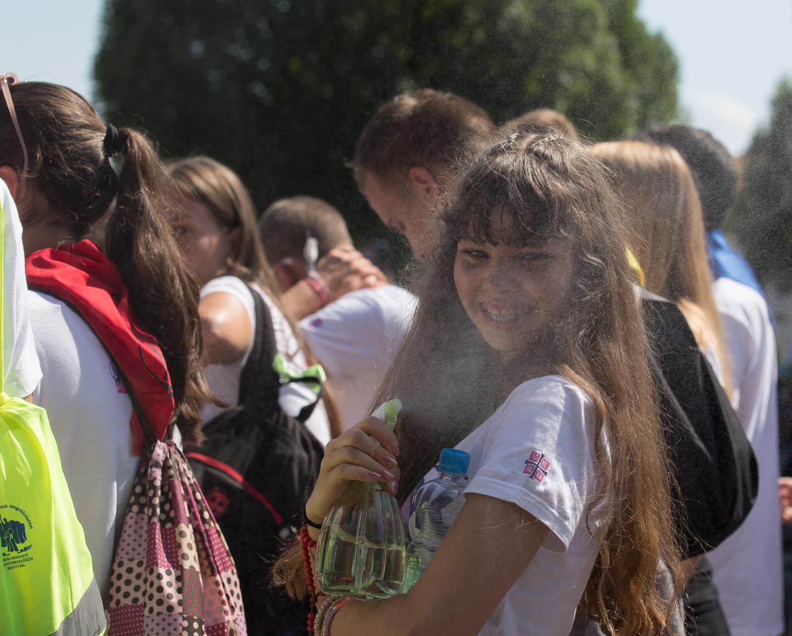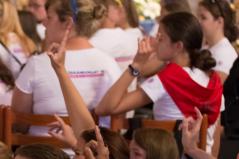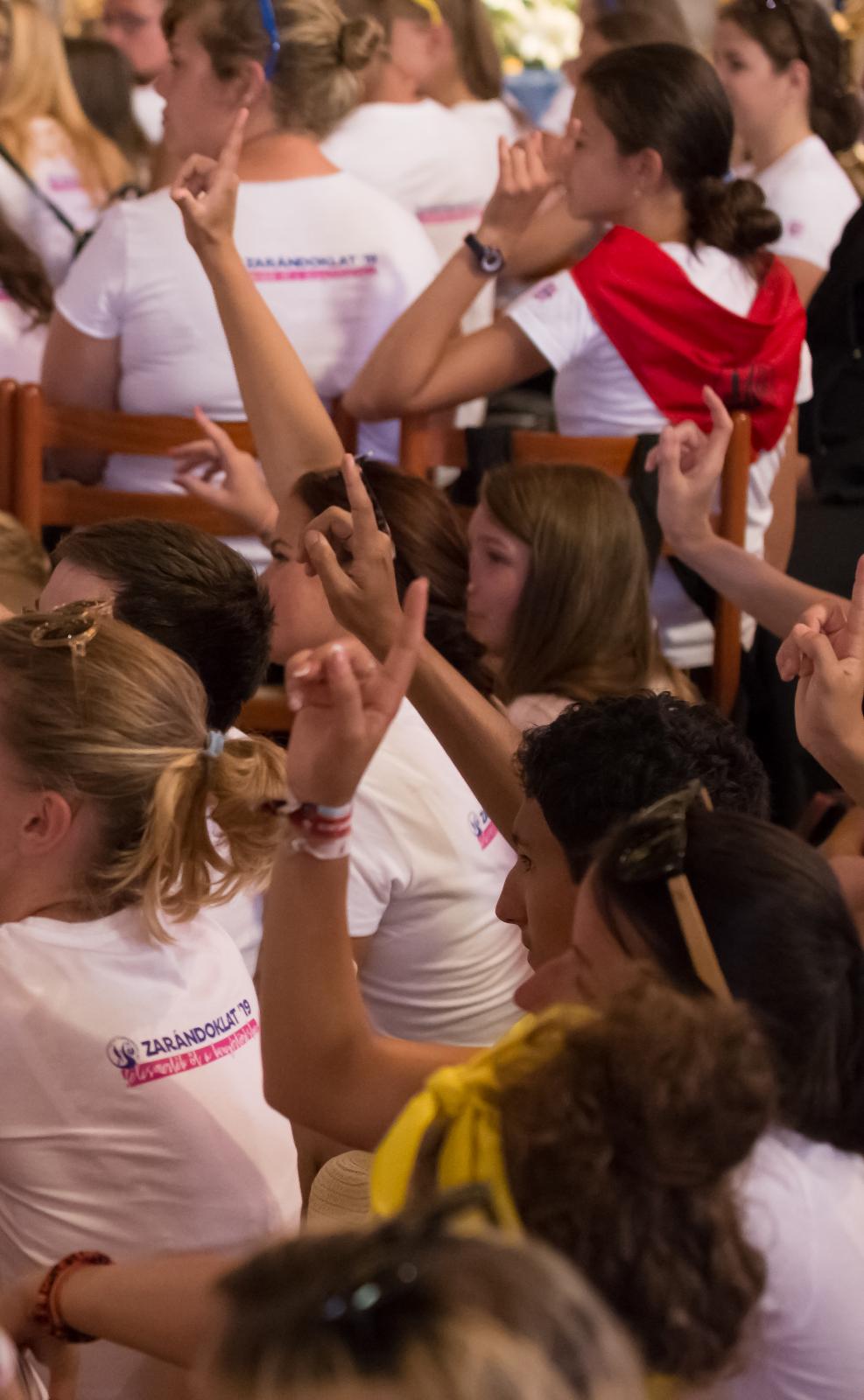 A templomban elérzékenyülve, a templomtéren felállított tábori oltár előtt már önfeledt jókedvvel ültek újra egymás mellé a fiatalok, akik ugyan zömében a középiskolás korosztályból érkeztek, de voltak köztük idősebbek és nosztalgiázó zarándokok, vagy gyermekükhöz csatlakozó házaspárok.