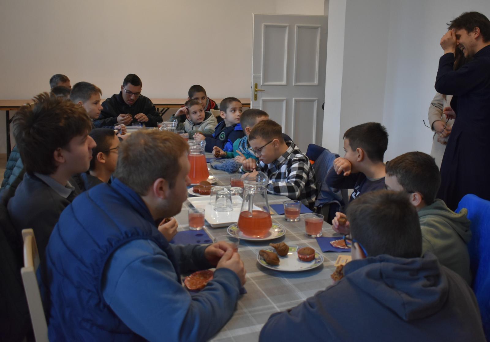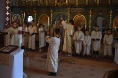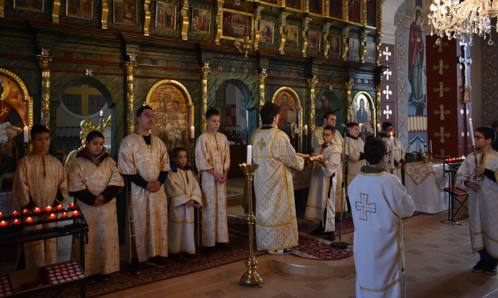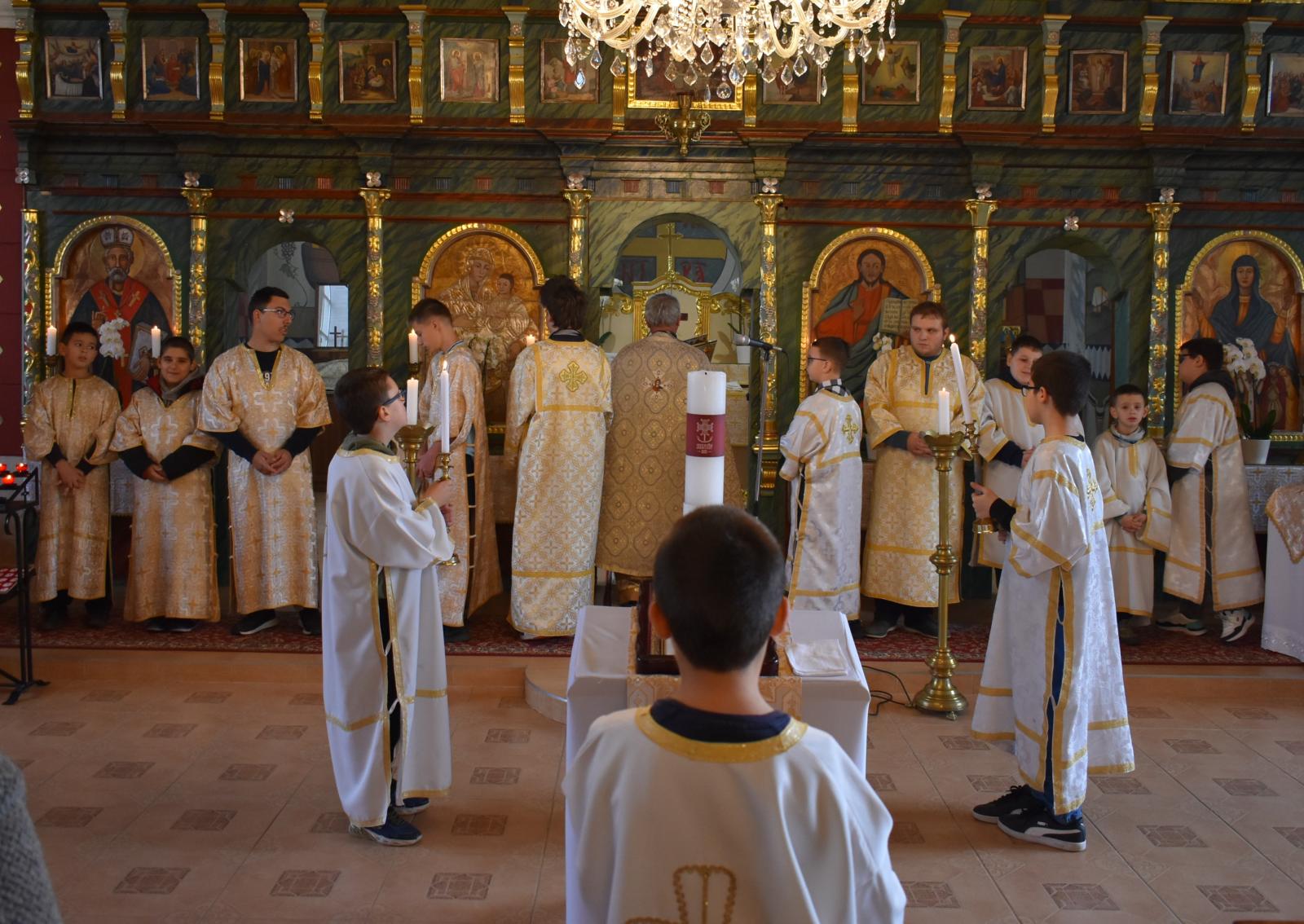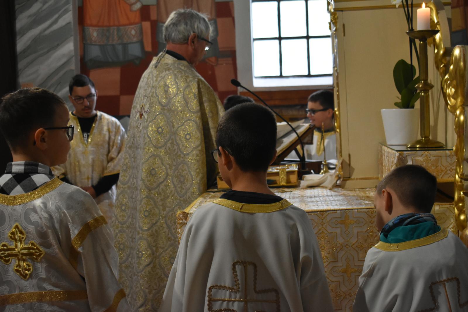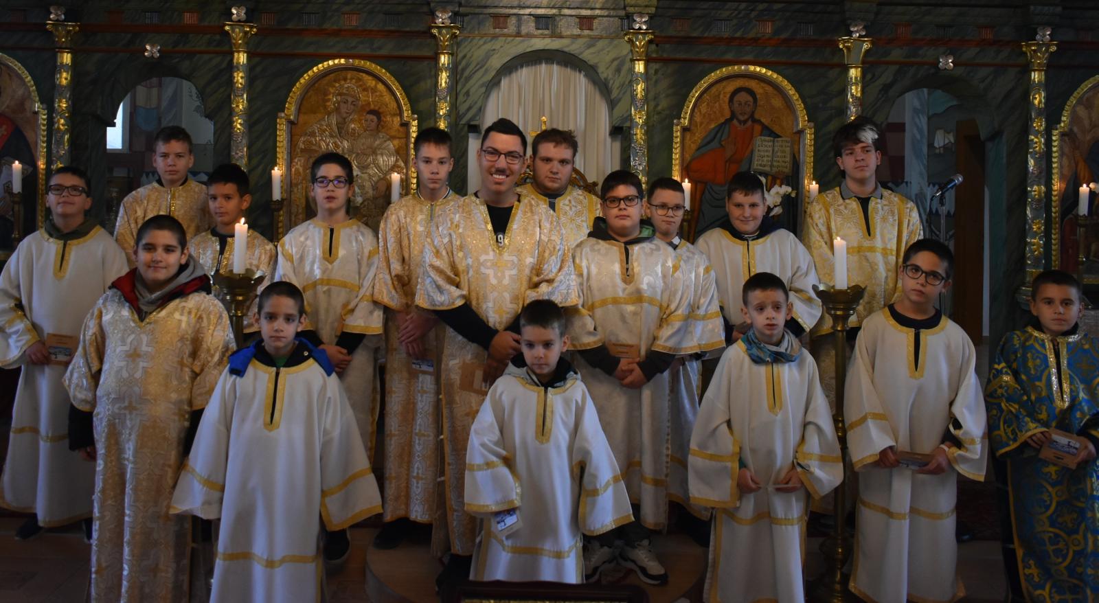A liturgián értük imádkoztak és a közösség a legtöbbet ministráló fiúkat megajándékozta. Az év során negyvenen vállalták a liturgián való szolgálatot. Voltak közöttük egyetemisták, középiskolások, általános iskolába járók és egy-két óvodás is. Parókus atya a köszöntéskor kiemelte, hogy ők nemcsak a liturgiát teszik jelenlétükkel ünnepélyesebbé, hanem példát is adnak másoknak, s ezzel Isten üzenetét közvetítik az embereknek az angyalokhoz hasonlóan. Isten áldja meg az oltárt szolgáló életüket!
