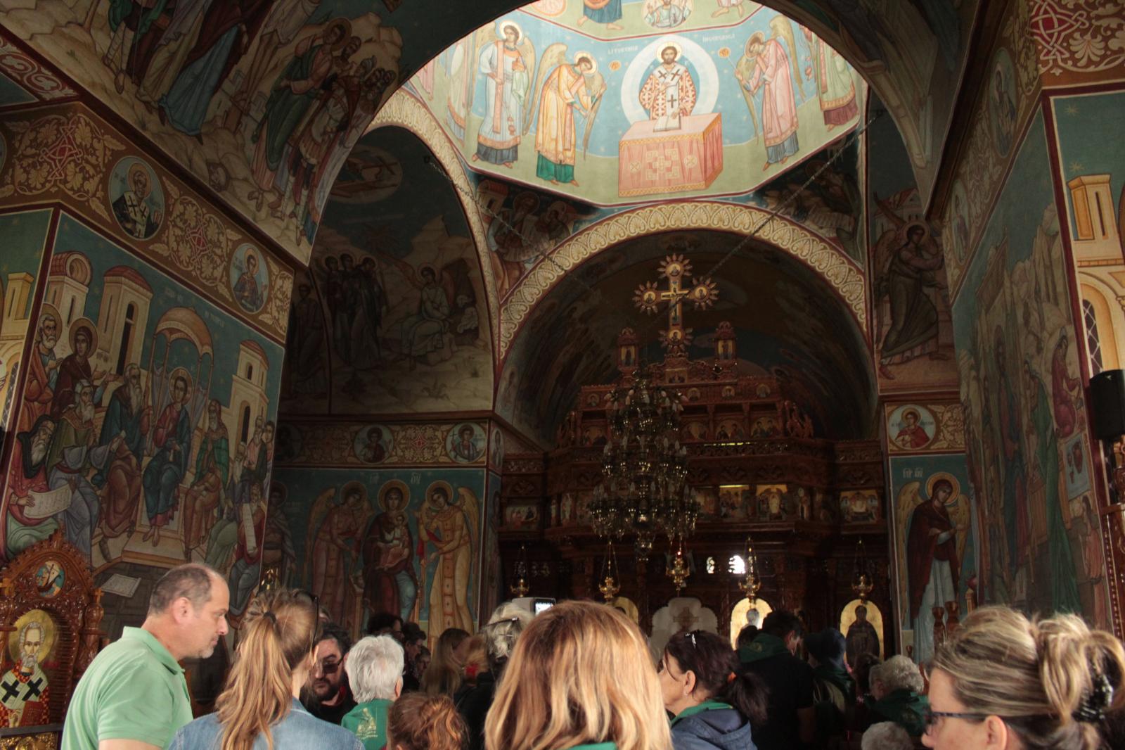 Vasárnap vendéglátóinknak megköszöntük a finom ételeket, és a melegszívű fogadtatást. Záróprogramként Gyergyószentmiklóson egy ortodox (volt görögkatolikus templomban) szertartásra csöppentünk be, ahol a nagyon kedves atya megmutatta nekünk a helyi könnyező Szűzanya kegyképét, amit csókkal illethettük.
