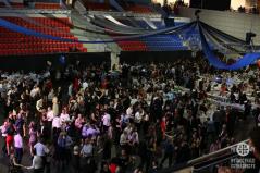 Szurkolás helyett taps, sport helyett tánc és zene töltötte be a nyíregyházi Continental Aréna küzdőterét szombat éjjel. A görögkatolikus bál azonban a Szent Miklós-székesegyházban kezdődött püspöki vecsernyével. A metropólia egyházmegyéit megszólító nagyszabású rendezvényt a görögkatolikus főpásztorok is megtisztelték jelenlétükkel, így a csordultig telt székesegyházban mindhárman együtt imádkoztak a hívekkel. A tékozló fiú elővecsernyéjét nagy tömegben énekelték, s a kevesebb létszámhoz szokott alkonyati istentiszteleten zengett az imádság. „Így énekelni vecsernyét sokkal felemelőbb” – üdvözölte Kocsis Fülöp metropolita a többségében a farsangi bálra érkező híveket.