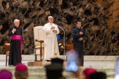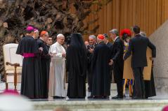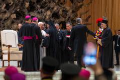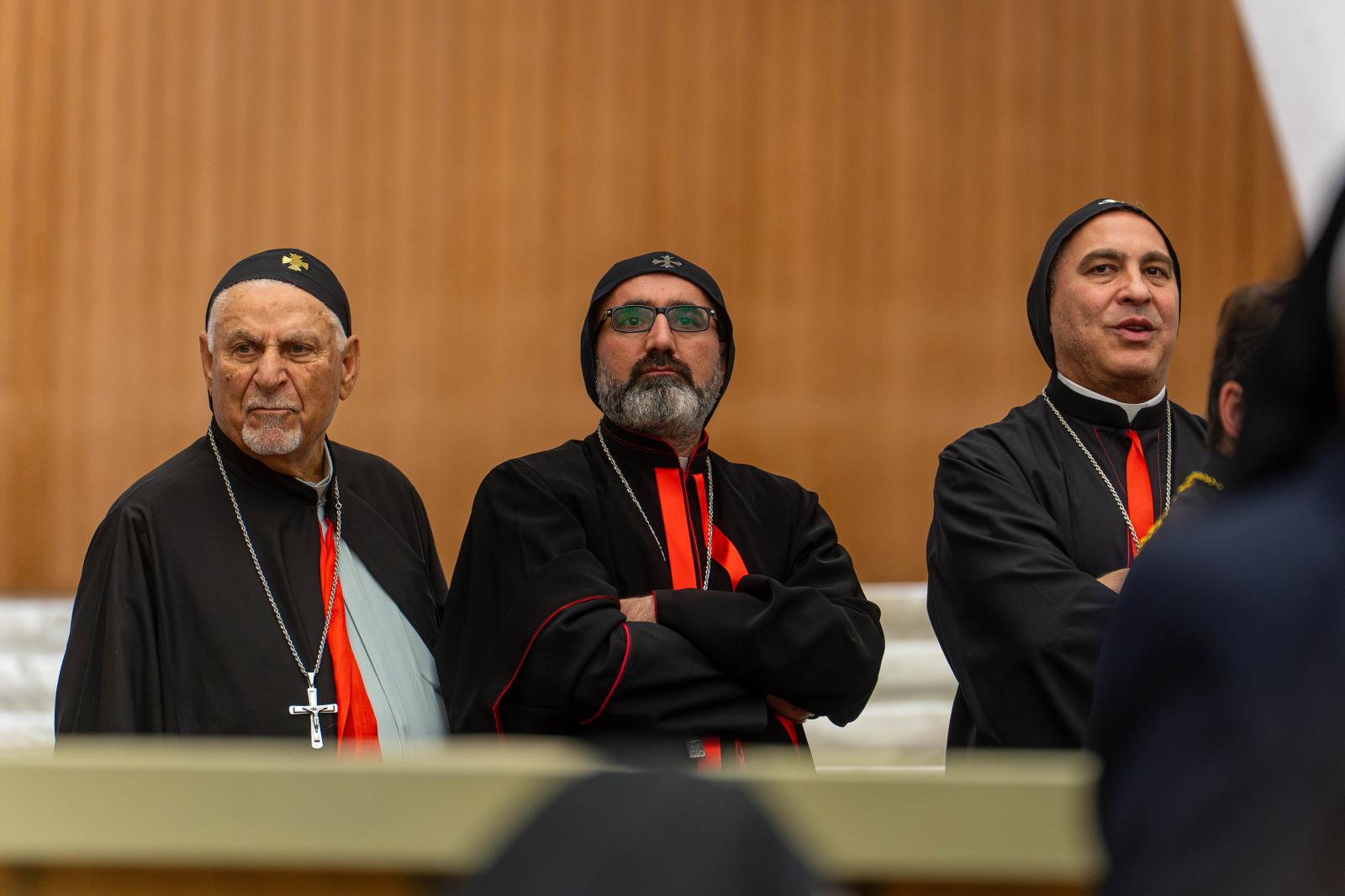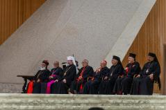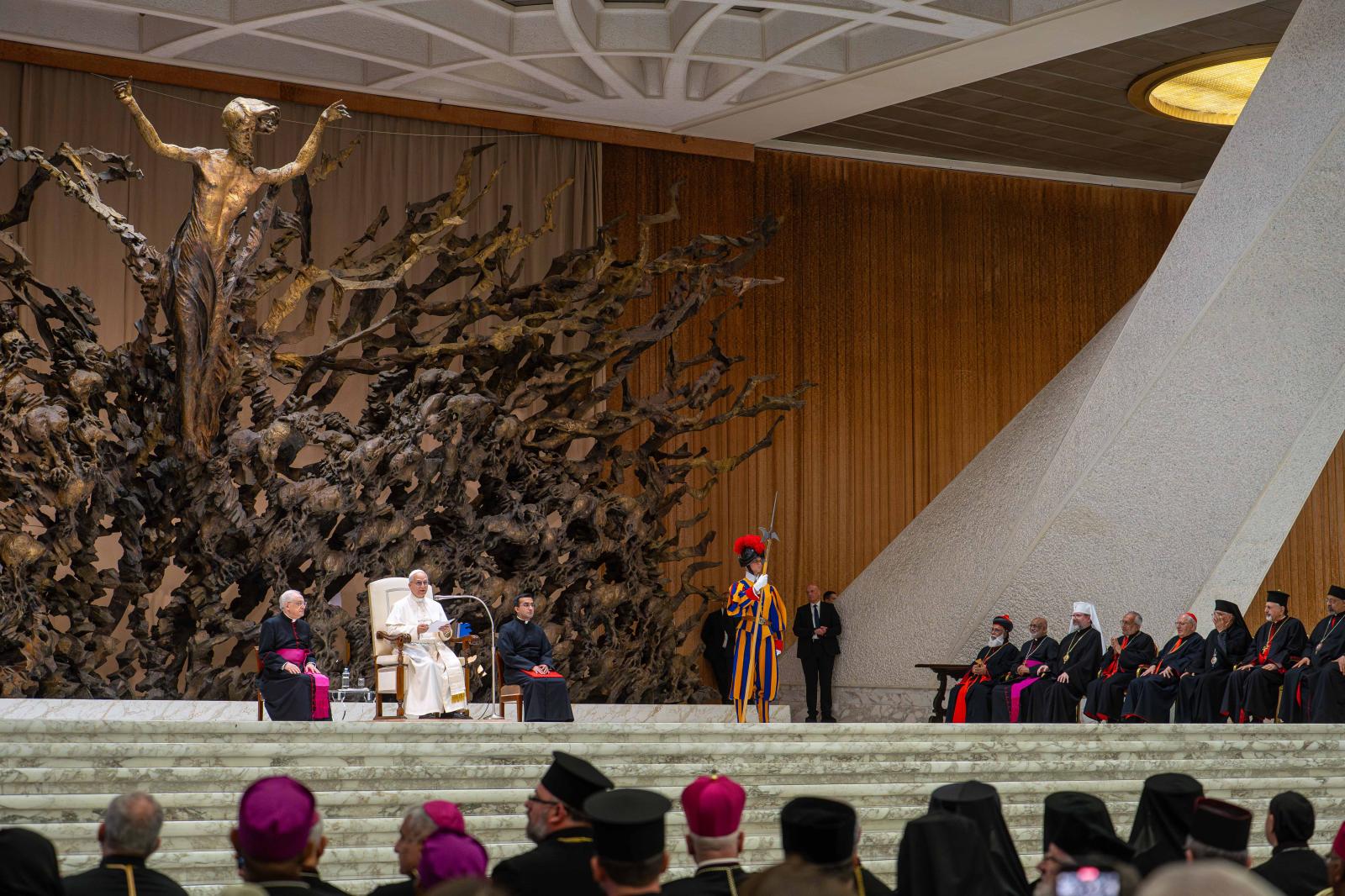 Igen, „egyedülálló és kiváltságos szerepetek van, mint a születő Egyház eredeti környezetének” (Szent II. János Pál: Orientale lumen apostoli levél, 5). Jelentős dolog, hogy egyes liturgiáitok – melyeket ezekben a napokban különböző hagyományok szerint ünnepélyesen végeztek Rómában – még mindig az Úr Jézus nyelvét használják. XIII. Leó pápa pedig azt sürgette, hogy „a keleti liturgia és fegyelem jogos sokfélesége az Egyház nagy ékességére és hasznára váljék” (Orientalium dignitas). Akkori aggodalma nagyon időszerű, mert napjainkban sok keleti fivérünket és nővérünket – köztük többeket közületek, akik a háború és az üldöztetés, az instabilitás és a szegénység miatt kénytelenek elmenekülni hazájukból – az a veszély fenyeget, hogy Nyugatra érkezve nemcsak hazájukat, hanem vallási identitásukat is elveszítik. Így a nemzedékek kihalásával a keleti egyházak felbecsülhetetlen értékű öröksége is elvész.