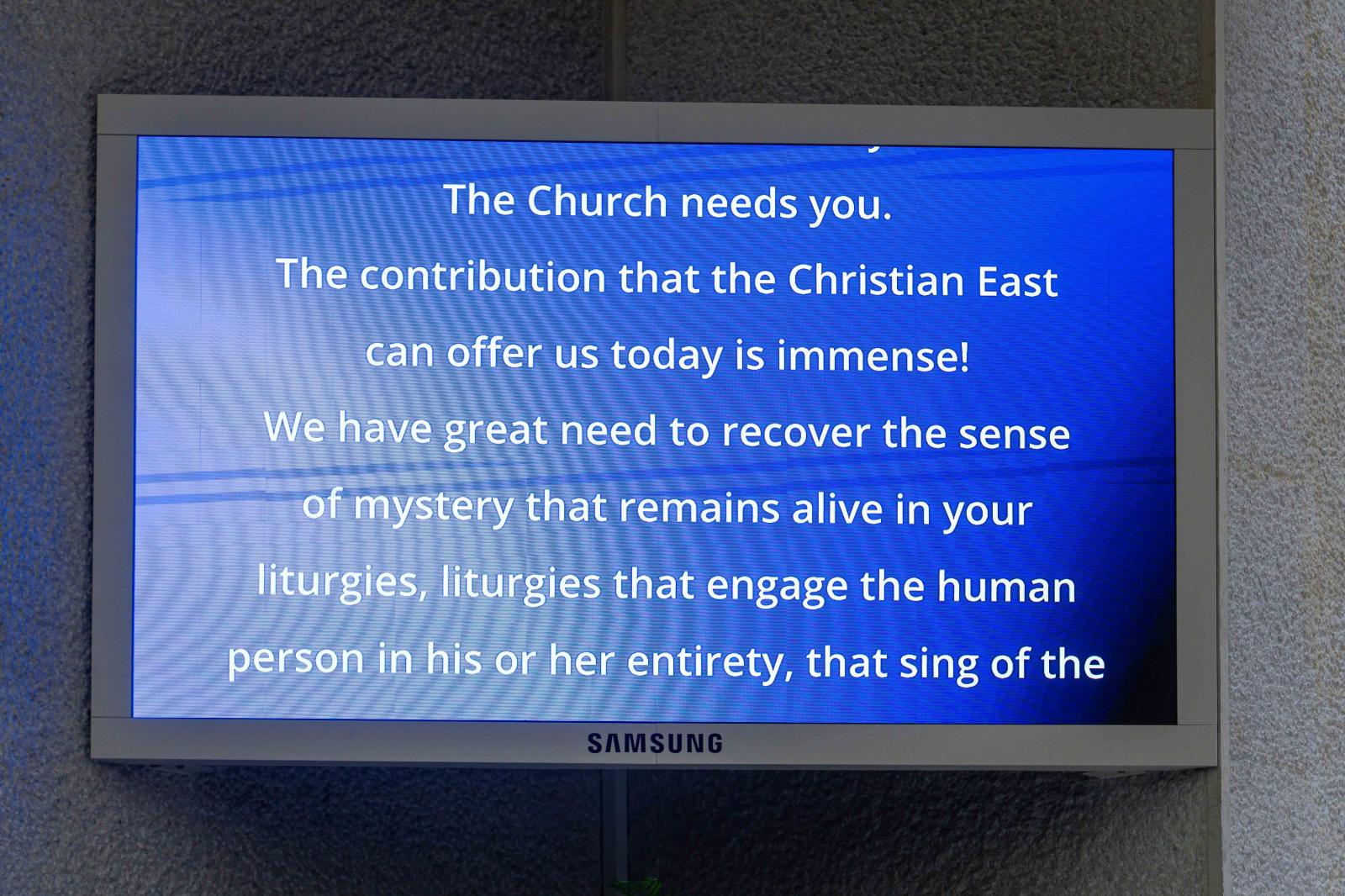 Mennyire szükségünk van arra, hogy visszanyerjük a misztérium iránti érzéket, mely oly elevenen van jelen liturgiáitokban, amelyek az emberi személyt a maga teljességében vonják be, az üdvösség szépségét éneklik, és ámulatot ébresztenek az emberi kicsinységet átölelő isteni nagyságon!