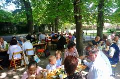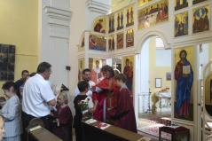 A szertartás után mindannyian a közösségi házunkba vonultunk, ahol nem csupán László atyát éltettük, hanem egyházközségünk Családi Napját is ekkor tartottuk. Közös együttlétünk késő délutánig tartott, melyen közel százan vettünk részt. Akiben még ezek után is maradt lendület, szeretettel vártuk vissza templomunkba, ahol az Ars Sacra Fesztivál keretein belül Gábor atya a keleti ikontiszteletről tartott előadást a jelenlévőknek.