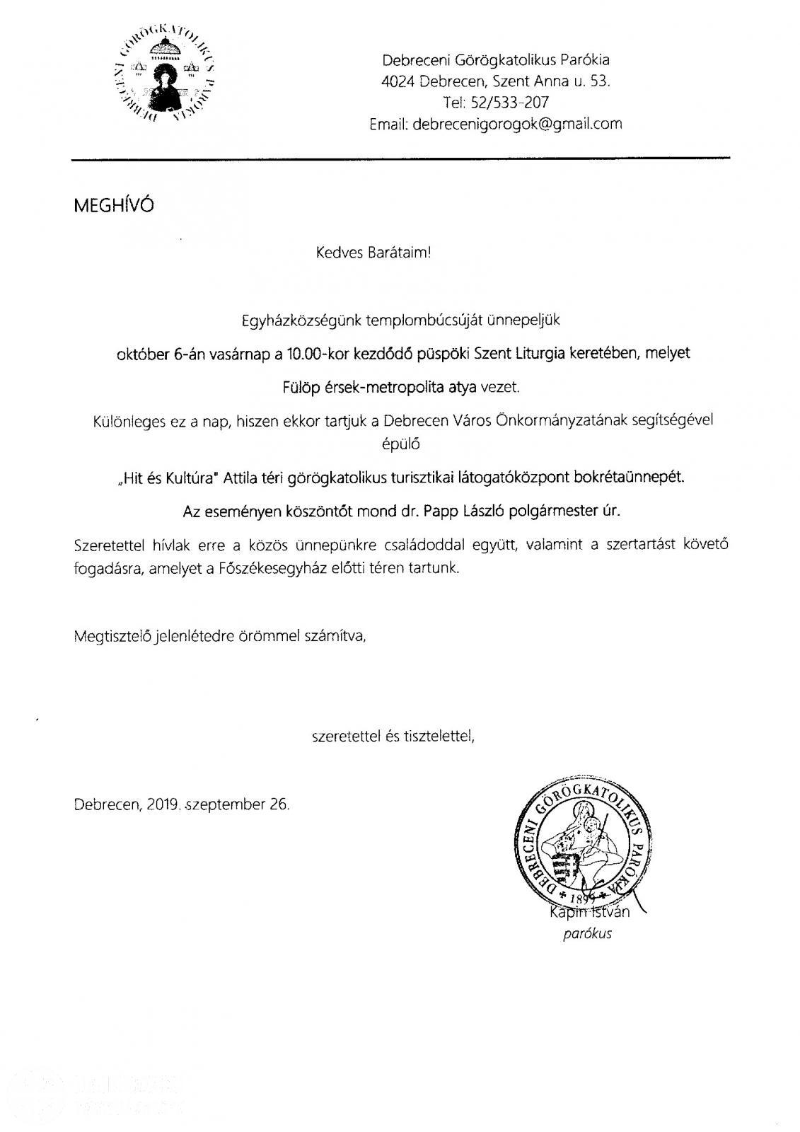Erről emlékezik a Debreceni Görögkatolikus Parókia október 6-án.