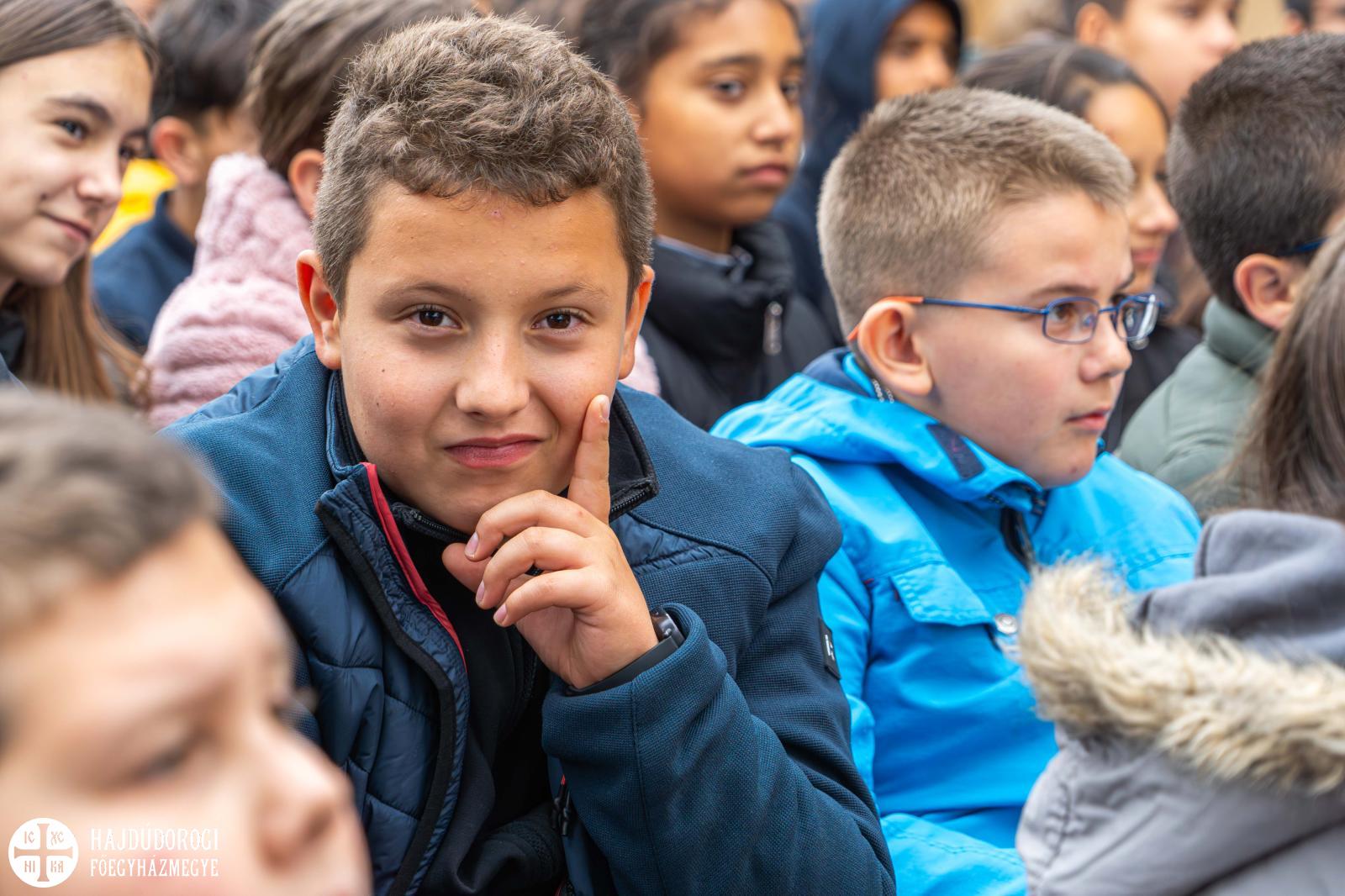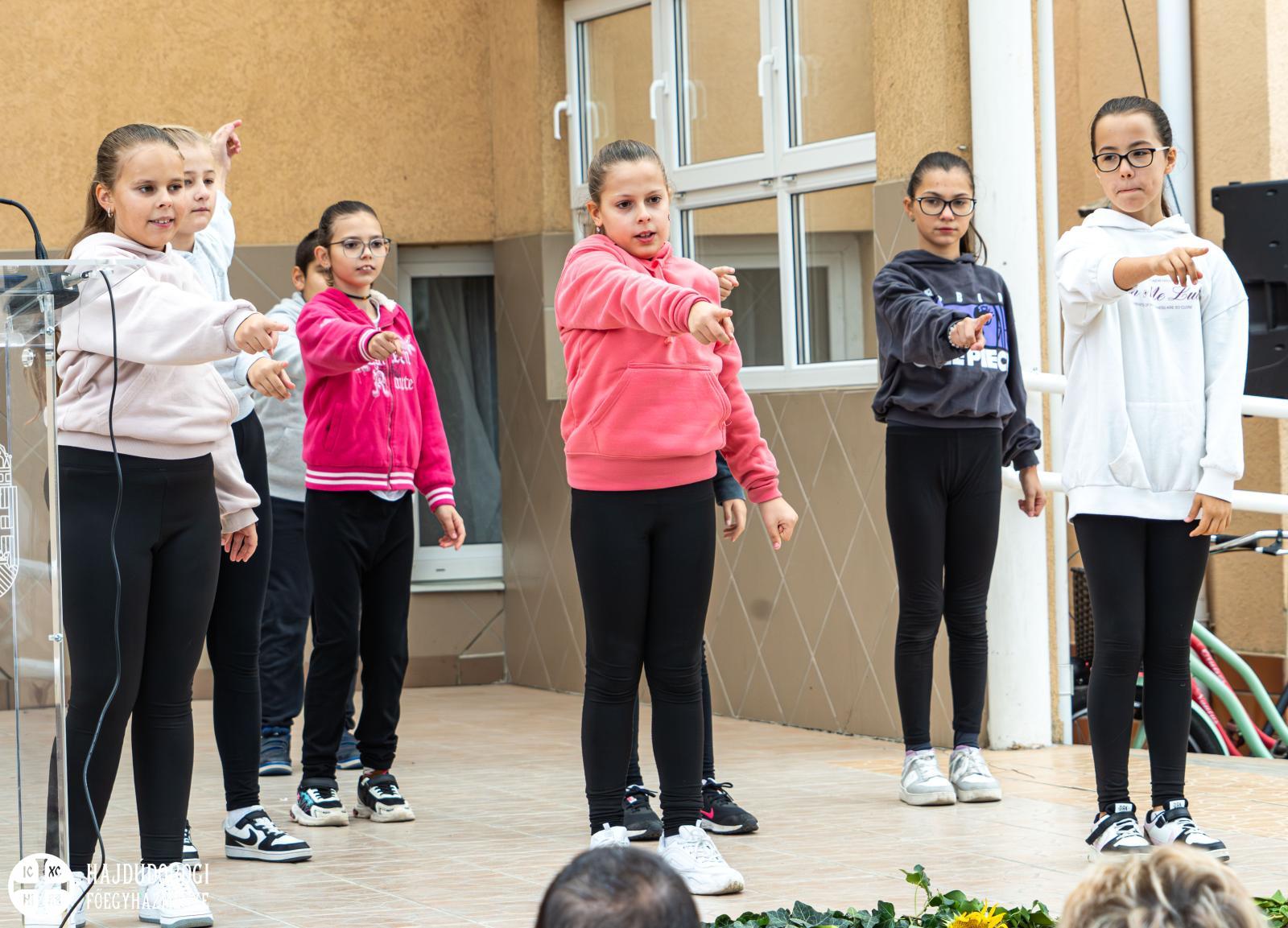 Az ünnepségen Suga Borbála és Gulyás Zsombor negyedik osztályos tanulók Tóth Ágnes - Játszótéren című versét adták elő, László Gyula pedig freestyle futballbemutatót tartott.