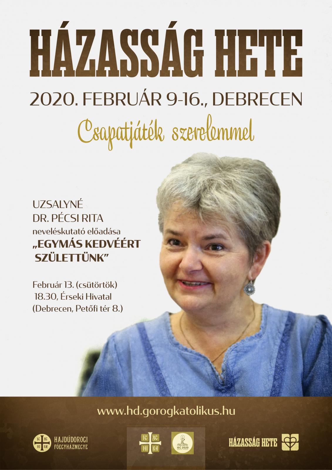 A görögkatolikus hívek nem először találkozhatnak Uzsalyné dr. Pécsi Rita, neveléskutatóval. A neves szakembert családtáborainkban, tematikus rendezvényeinken már többször vendégül láttuk. Most, Debrecenben, a Házasság hetén igyekszik hasznos gondolatokkal segíteni azt, hogy férfi és nő mindennapjai zökkenőmentesen teljenek.