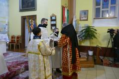 Végül még egy szempontból mutatott rá érsek atya az ima erejére: „Itt most Hajdúnánáson hosszú ideje már a római katolikus testvérek befogadnak bennünket, hogy ebben a kedves templomban szálljon fel az imádság. Nagy elhatározást tettünk Gergely atyával és az itteni hívekkel, hogy saját templomot szeretnénk építeni, ahol a mi templomunkban szállhat fel majd az imádság. Nagyon-nagyon sok imádság kell ahhoz, hogy templom épüljön. Igen, a templom imádságból készül. Látszólag ez a tömjénfüst jellegtelen, hiszen néhány másodpercig látjuk csak, érezzük az illatát, fölfelé száll, aztán nem maradt belőle semmi. Pedig a lelkünkben nagyon sok marad. Ami a lelkünkben marad ezután a mai szertartás után, az sokkal fontosabb, sokkal mélyebben bele épül az életembe, mint az, amit éppen megvásárolok, megeszek, vagy magamra öltök. Az ember belső világa, ami az Istennel kapcsolatban van, az tud épülni igazán.