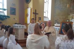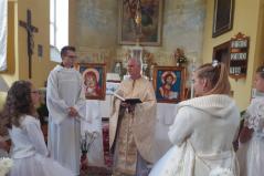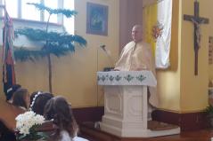 „Csoda fog nemsokára történni. Hiszen ma magunkhoz fogjuk venni Jézus Krisztust. Bízom abban, hogy nemcsak ma, hanem még nagyon sokszor akarunk Krisztussal egyesülni, hiszen Pál apostol szavai szerint ti az élő Isten temploma vagytok. Isten azt mondja, hogy közöttünk fog járni és mi az Ő népe leszünk. „Én magamhoz fogadlak titeket, és atyátok leszek, s ti az én fiaim és leányaim lesztek, mondja a mindenható Úr” (2Kor 6,18) – idézte atya az apostoli szakaszt. Majd folytatta: „Ünnepelni jöttünk ide a templomba, mert nagy ünnep az, hogy a gyerekek első alkalommal járulnak szentáldozáshoz.
