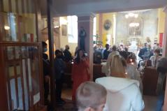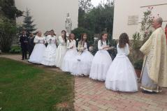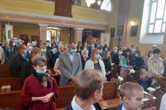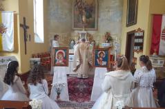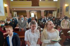 A pandémia miatt az elsőáldozók sem teljes létszámban jelentek meg, voltak, akik a járvány időszaka után szeretnének részesülni az Eucharisztia szentségében. Viszont voltak, akiket ezek a viszontagságos körülmények sem tántorítottak el attól, hogy gyönyörű ruhában egy szál fehér virággal és egy égő gyertyával az Úr asztalához járuljanak. Az ő vidám kis csicsergő hangjuk köszöntötte a templomba érkezőket. Bevonulásukkor zengett a római katolikus templom, melyet bőségesen megtöltöttek a görögkatolikus hívek. A szabályok betartásával folyt a liturgia: az ajtóban maszkokat osztogattak és kézfertőtlenítőt adagoltak Gergely atya kis segítői.
