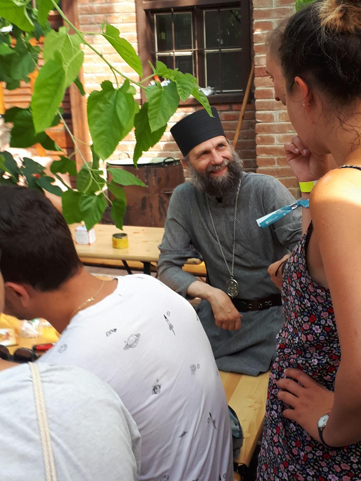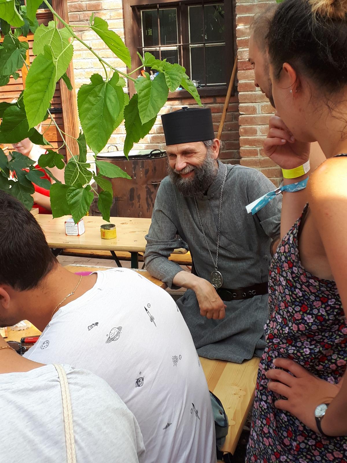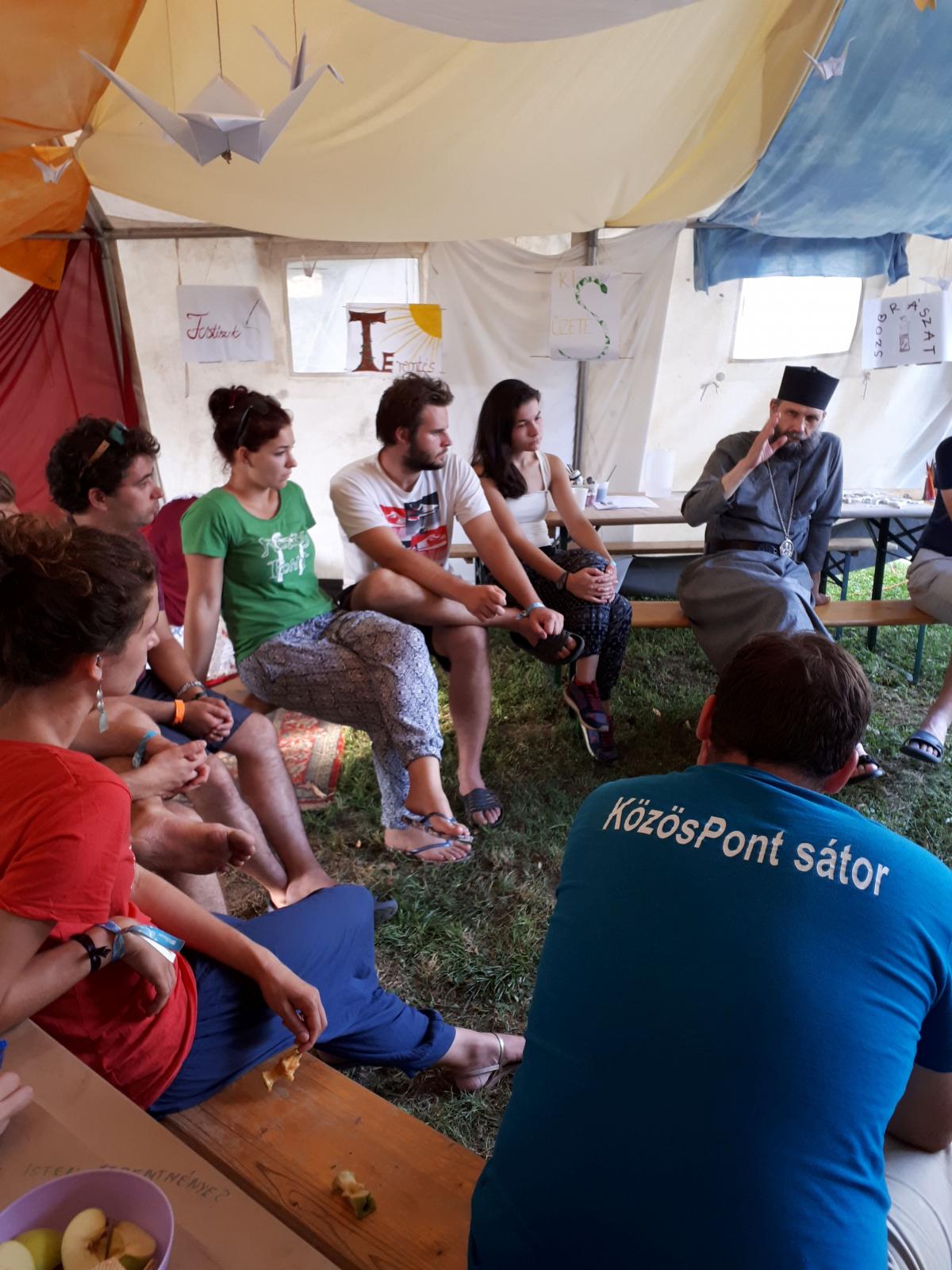 A református templom oldalában felállított keresztény sátor önkéntesei és az oda betérők is egy nyitott beszélgetés keretében kérdéseket intézhettek az Érsekhez, aki szívesen válaszolt nekik. A fiatalok érdeklődtek a görögkatolikus egyház jelenlegi helyzete felől, valamint személyes élethivatása, papi és szerzetesi hivatása megválasztásáról. Így tudhatták meg, hogy miként lett püspök egy egyszerű szerzetestestvéri életre vágyó és azt megélő papból, miként adta át Isten kezébe életének fontos döntéseit. Arra a kérdésre, hogy „mit keres egy érsek a fesztiválon” azt válaszolta, számára mindig is tetszettek azok a lehetőségek, amelyek során fiatalokkal lehet beszélgetni. Korábban is hallott a KözösPont fesztiválmisszióról, amely a Sziget fesztiválon jelent meg először. Első látogatása során, két éve a Strand fesztiválon elismerését szerette volna kifejezni a missziós csapat felé, mert a KözösPontos önkéntesek hivatása is ugyanazon tőről fakad, mint az Ő papi hivatása. Ez pedig az Istenben való tenni akarás.