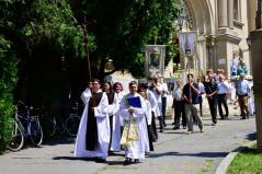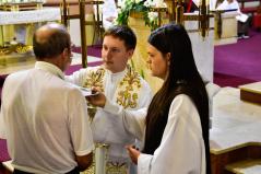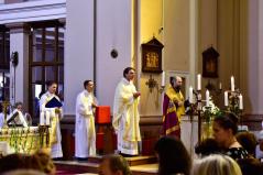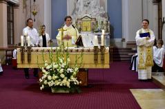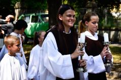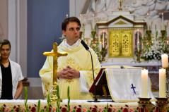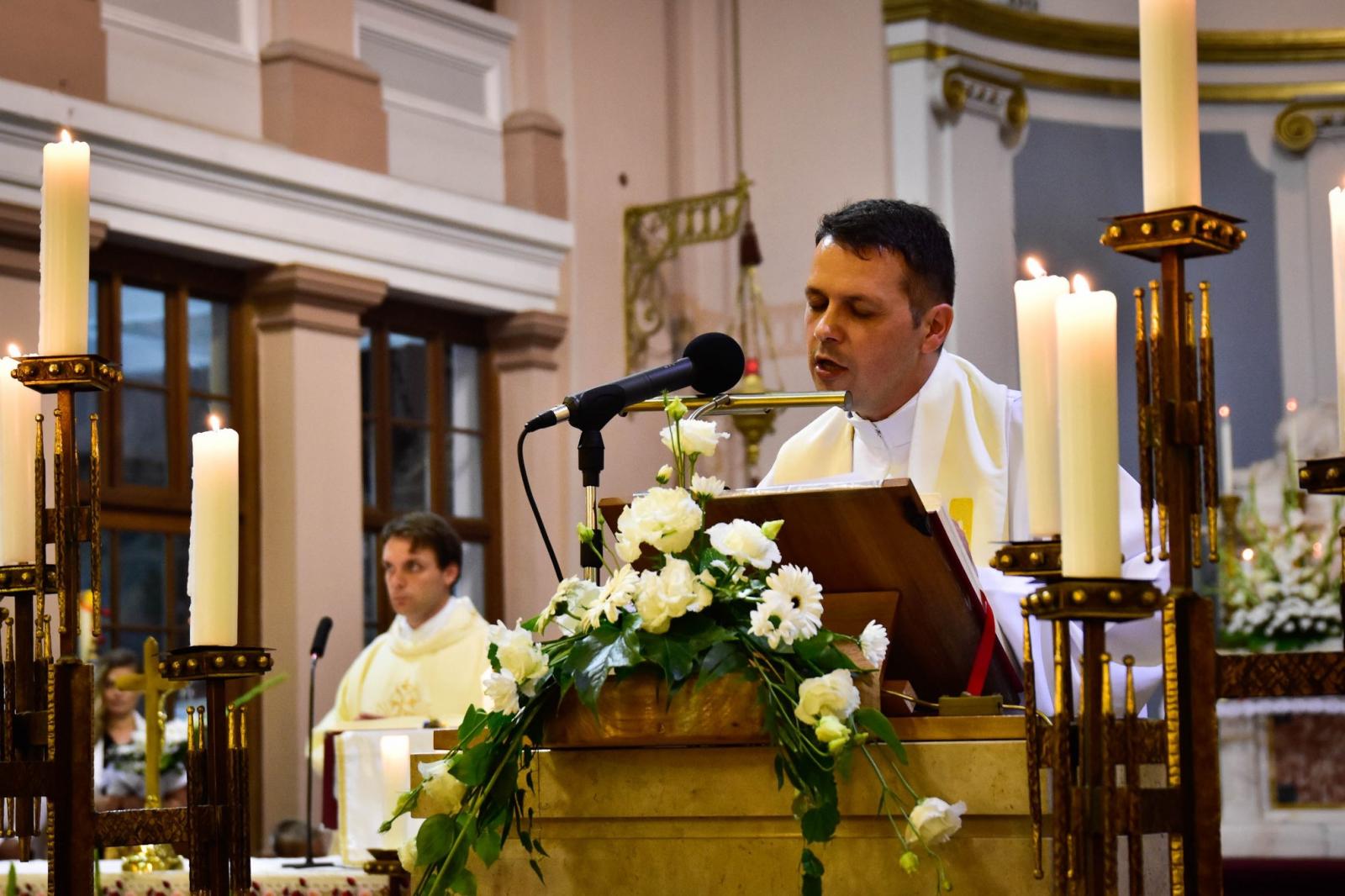 Az ünnepélyes búcsúi szentmise július 21-én, délelőtt 10.30-kor kezdődött a zsúfolásig megtelt bazilikában. A szentmisében Dr. Fodor János plébános atya köszöntötte Kocsis Fülöp érsek-metropolita atyát, majd az újmisés Dávid atyát és külön köszöntve az egybegyűlt zarándokokat és az egyházközség híveit.