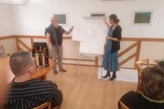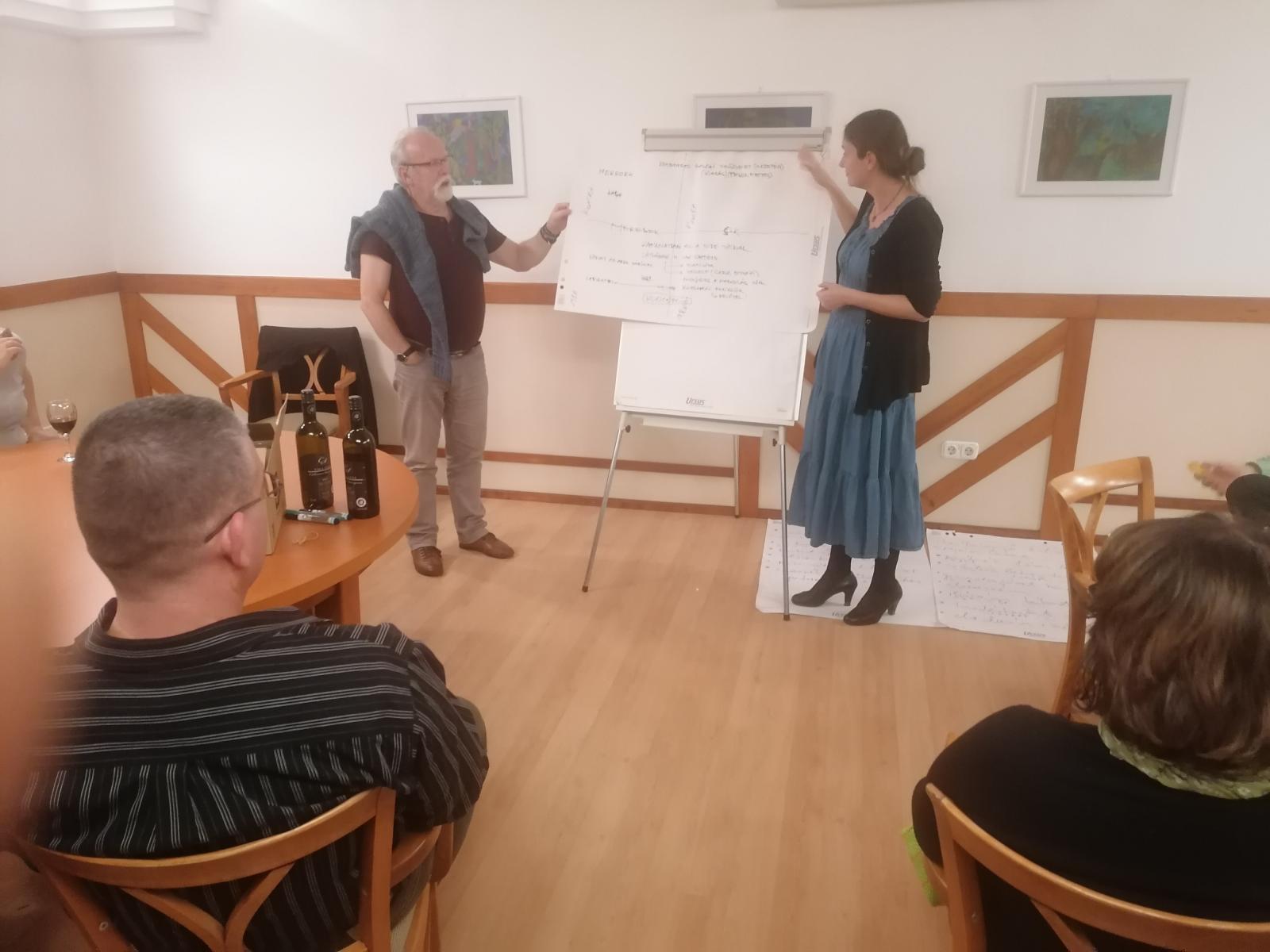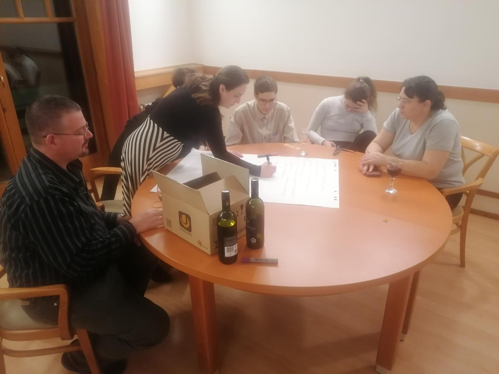A szombati nap zárásaként, a vecsernyét követően az együtt gondolkodás elve alapján szervezett, házi süteményekkel kísért, jó hangulatú megbeszélésen a zalabesenyői görögkatolikus közösségi ház jövőbeli céljairól, lehetőségeiről elmélkedtek a megfáradt túrázók.