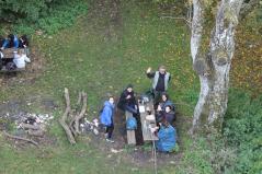 Másnap a kirándulni vágyók korán bontottak sátrat, hogy az igen hosszú, ám annál szebb túrát sikerrel teljesítsék. A több óra hosszán át tartó útvonalon a Bakony pazar, már az őszi időhöz öltözött élővilága tárult a közösség elé, akik nem maradtak lelki táplálék nélkül sem. Elek Antal atya az egyik közbeiktatott pihenő alkalmával megragadta a lehetőséget és rövid tanítást adott Moszkvai Szent Matróna tisztánlátásáról. Így lélekben megerősödve, lelkesedéssel és némi fáradsággal, de sikerült felérni a Kőris-hegyre, ahol a bátrabbak a Vajda Péter kilátóról csodálhatták meg a festői tájat. A változékony időjárás ellenére a távolban felsejlett a Pannonhalmi Főapátság világos épülettömbje is. A csúcson pihenésre nem sok idő jutott, mert a Zirci Ciszterci Apátság várta vecsernyére a híveket.