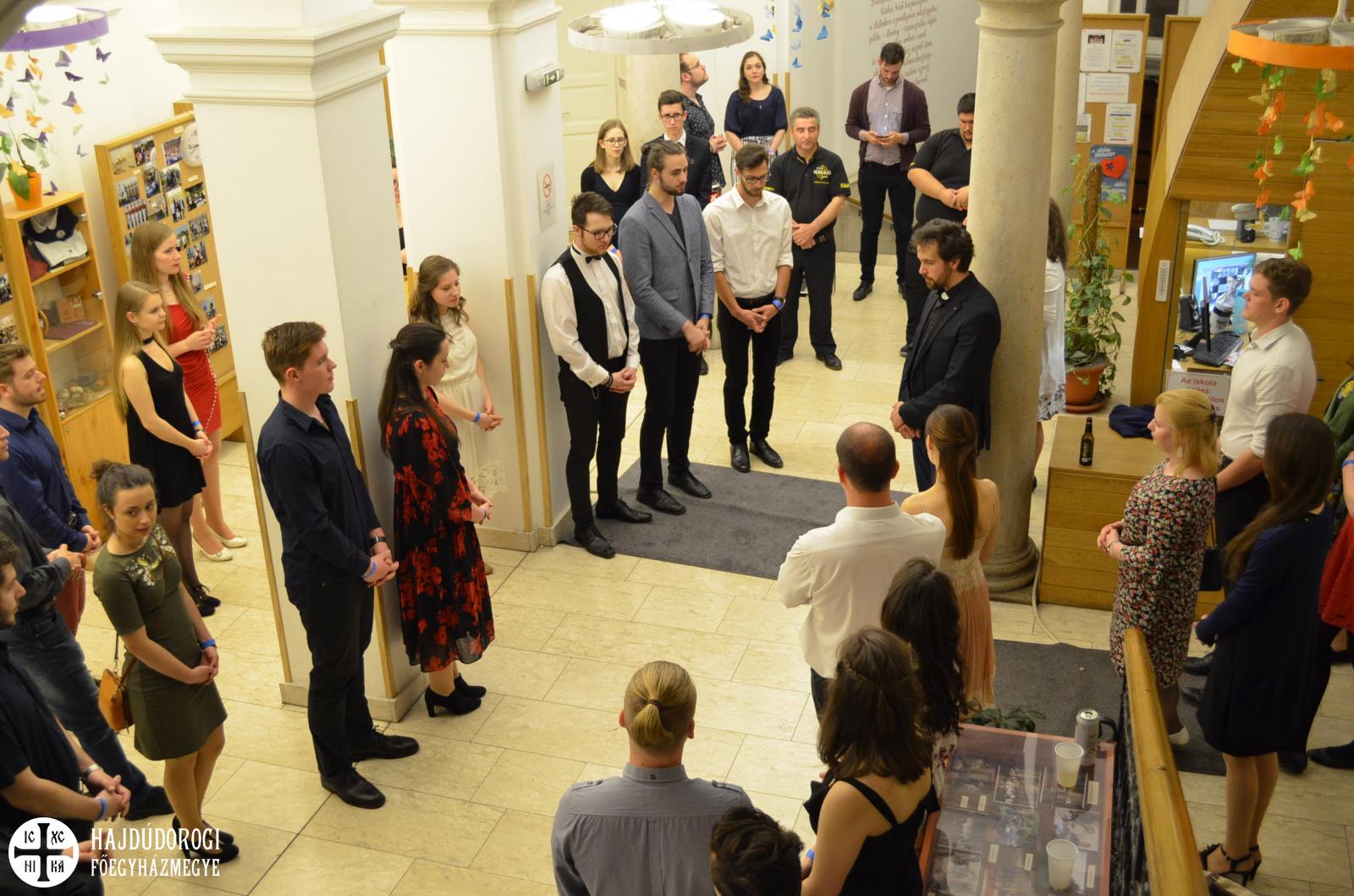 A bál húsvéti imádsággal és elcsendesedéssel kezdődött, amit Kocsis Tamás a budapesti egyetemi lelkész nyitógondolatai követtek. Tamás atya Szent II. János Pált idézve kiemelte az ifjú kor gazdagságát.