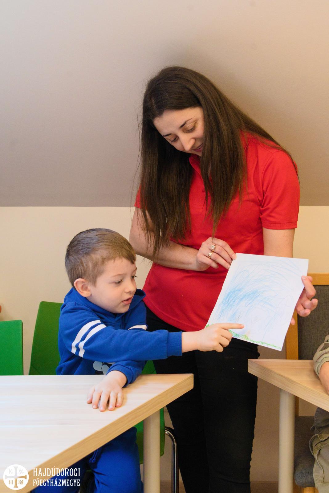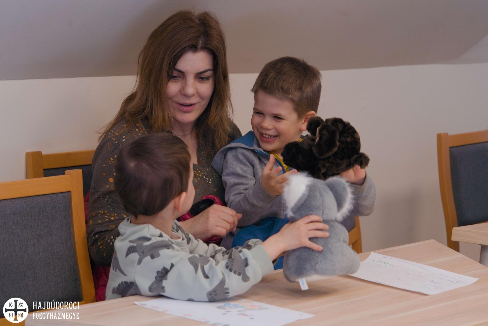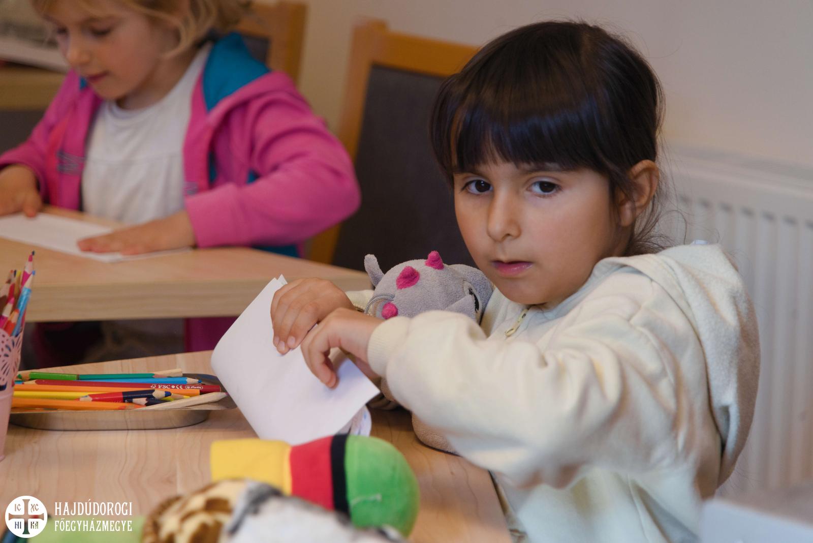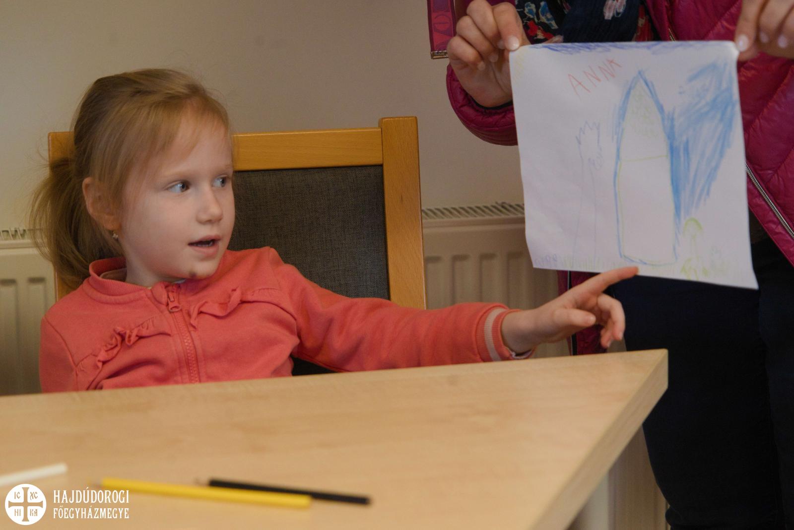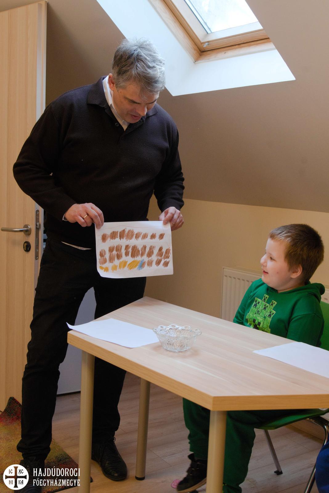 Délelőtt Vígkedvű Mihály utcai görögkatolikus óvodánkból érkezett két csoport, összesen harminc gyermek a szolgáltatópontra. Az ovisokat Jaczkó Dániel, a főegyházmegyei karitász vezetője köszöntötte, röviden összefoglalva a szolgáltatópont munkáját. Elmondta, hogy ezen a helyen ruhaneművel és lábbelivel is tudnak segíteni a rászorulóknak és gyerekeiknek.