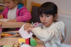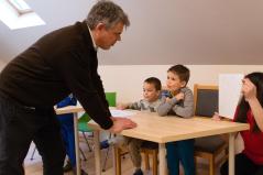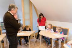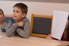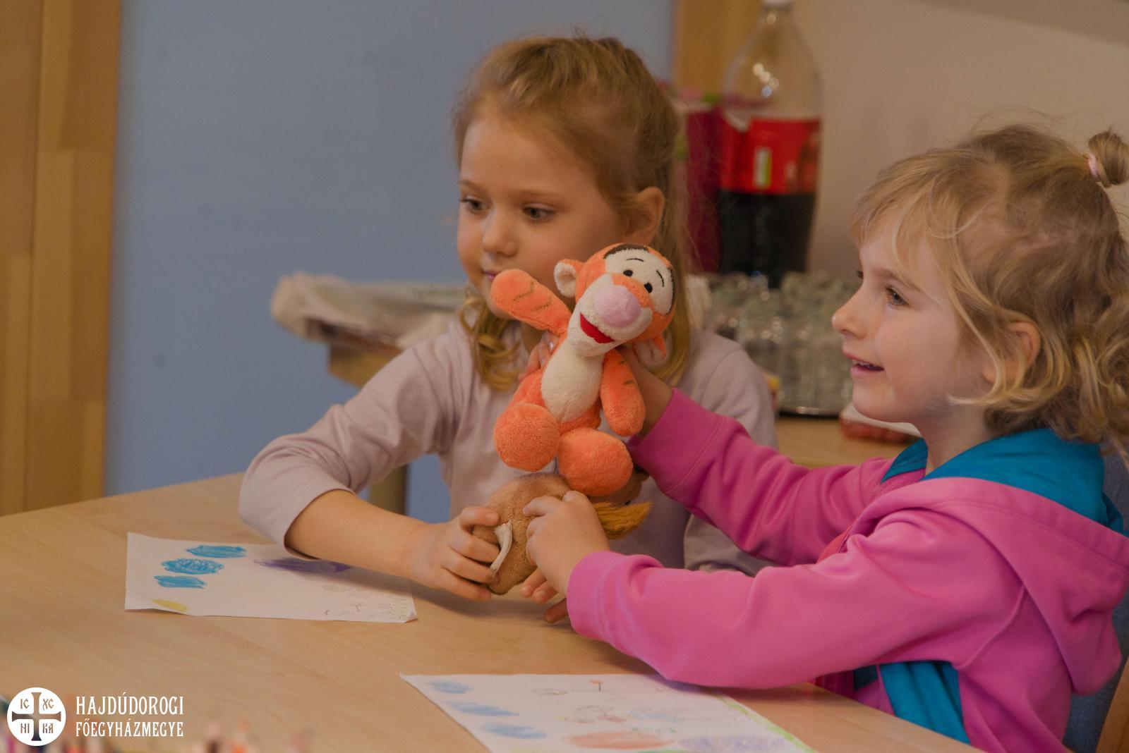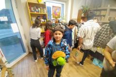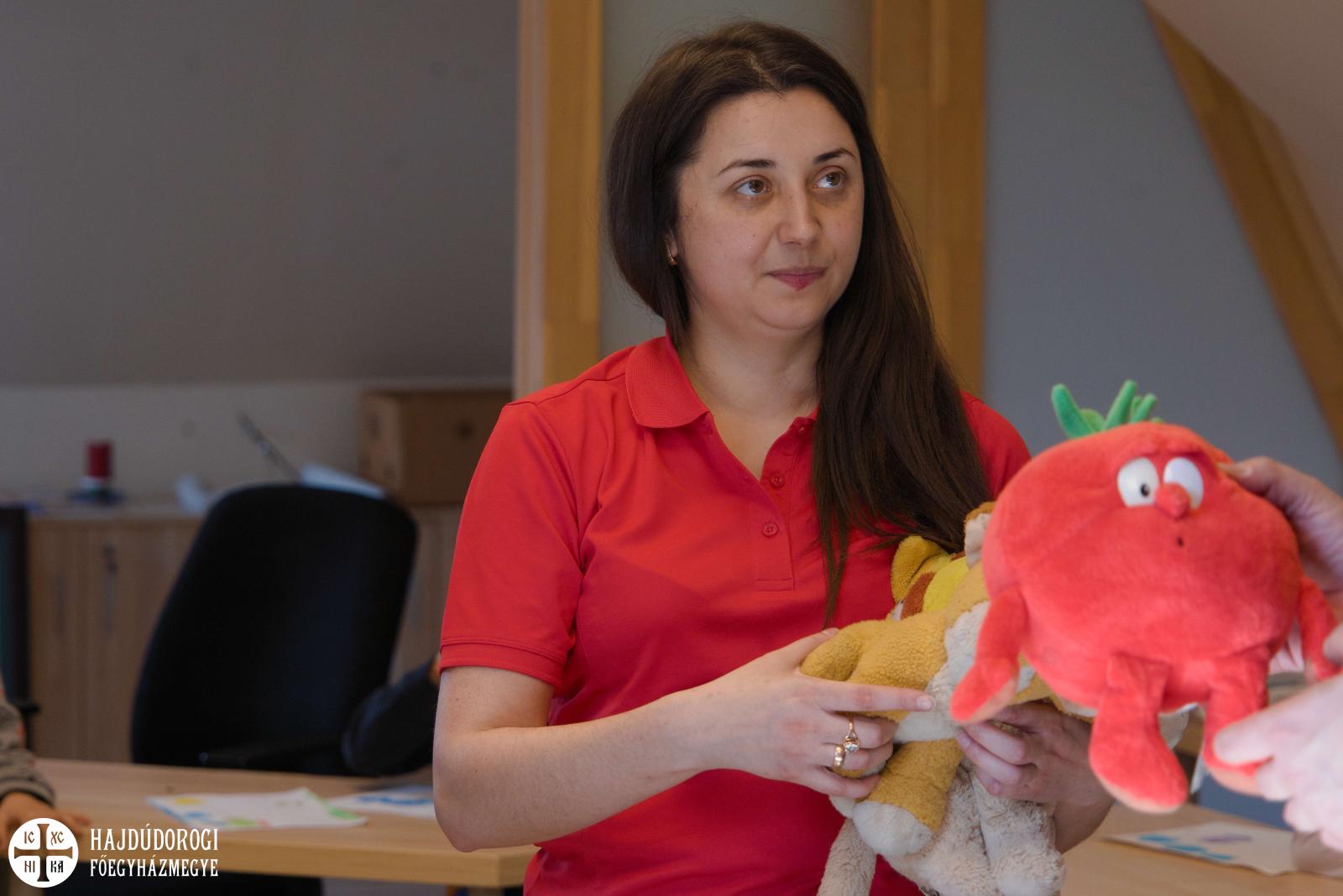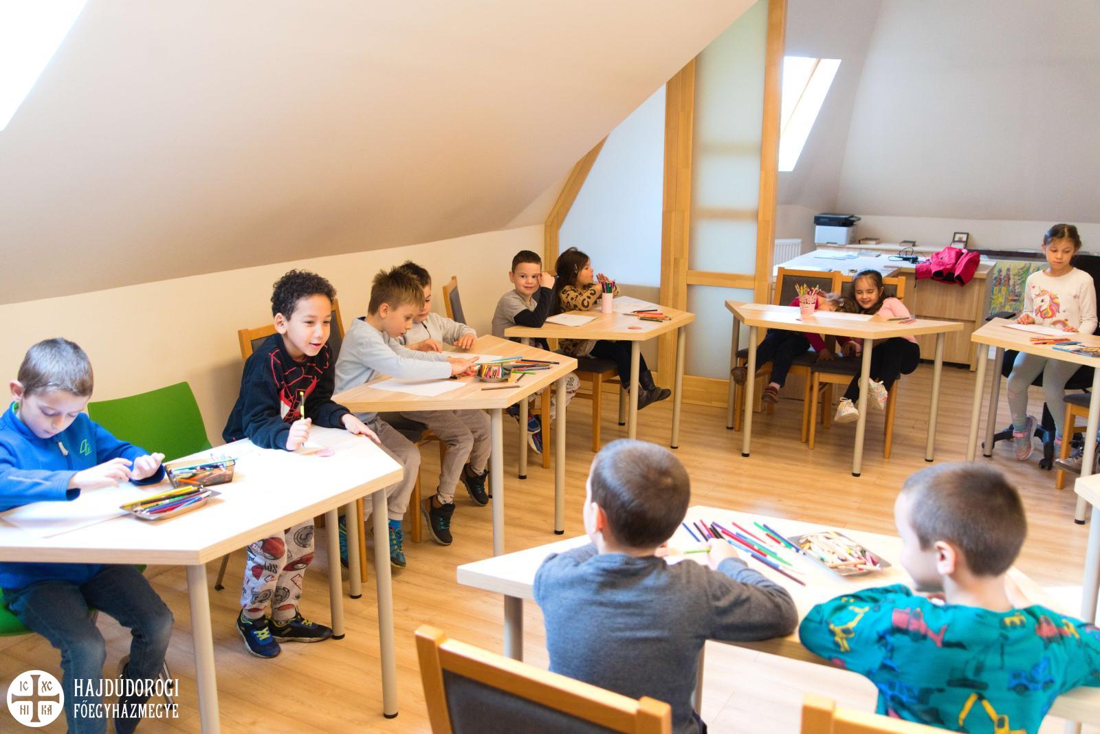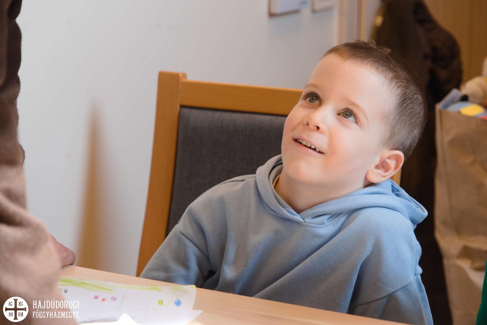 Délelőtt Vígkedvű Mihály utcai görögkatolikus óvodánkból érkezett két csoport, összesen harminc gyermek a szolgáltatópontra. Az ovisokat Jaczkó Dániel, a főegyházmegyei karitász vezetője köszöntötte, röviden összefoglalva a szolgáltatópont munkáját. Elmondta, hogy ezen a helyen ruhaneművel és lábbelivel is tudnak segíteni a rászorulóknak és gyerekeiknek.