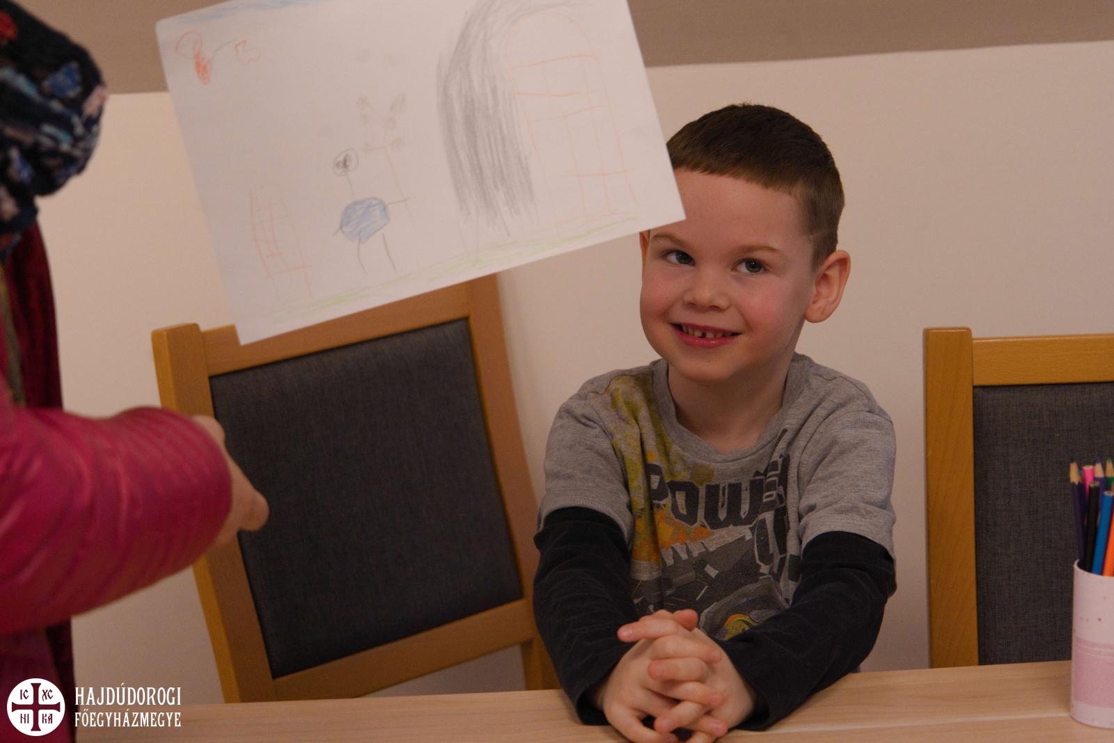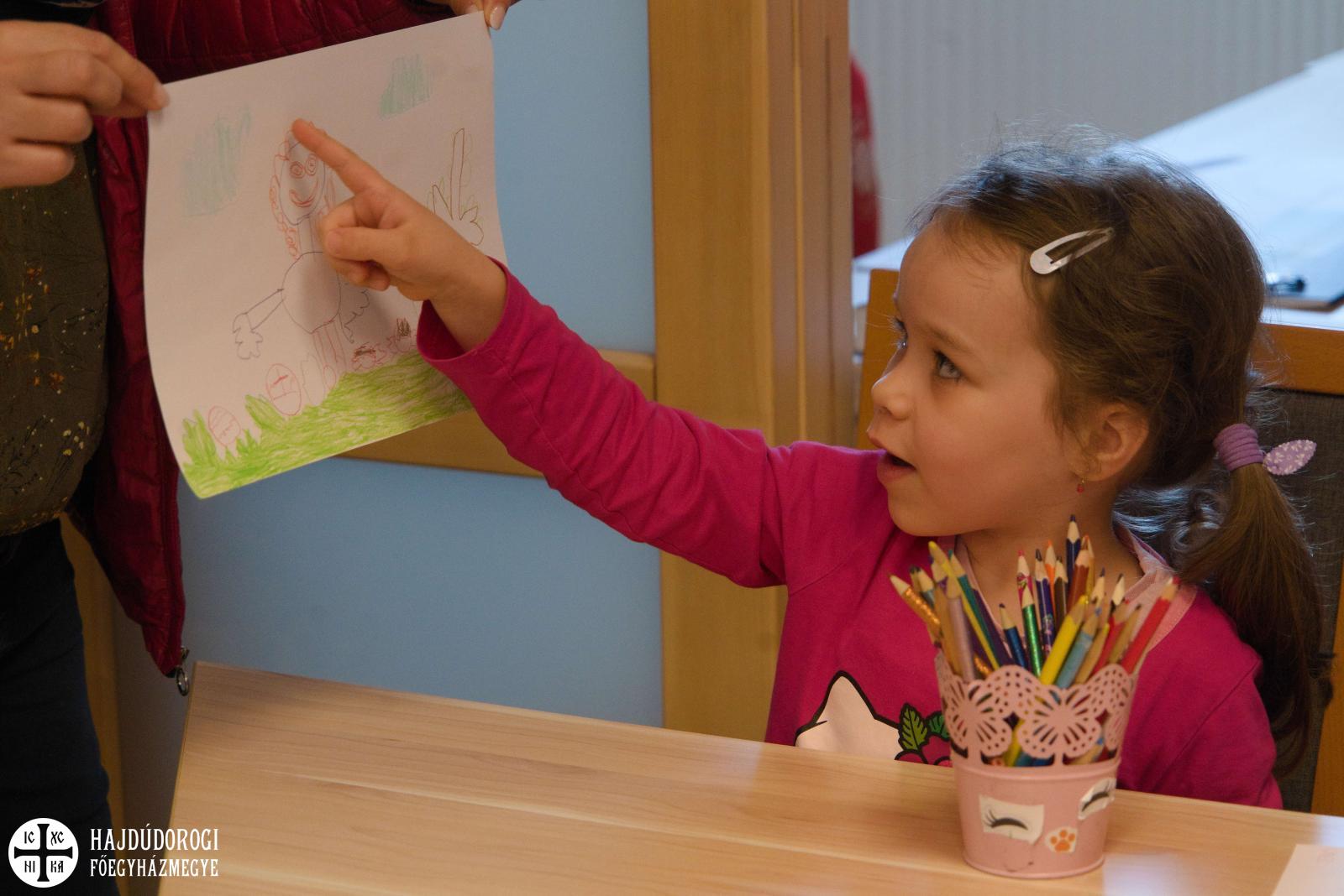 A versenyen közelgő ünnepünkkel kapcsolatos alkotások készültek. Húsvéti tojások, terített asztalok, családrajzok jelentek meg a papíron. Többen pedig a templomot és a megfeszített Jézus Krisztust is lerajzolták.
