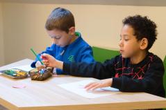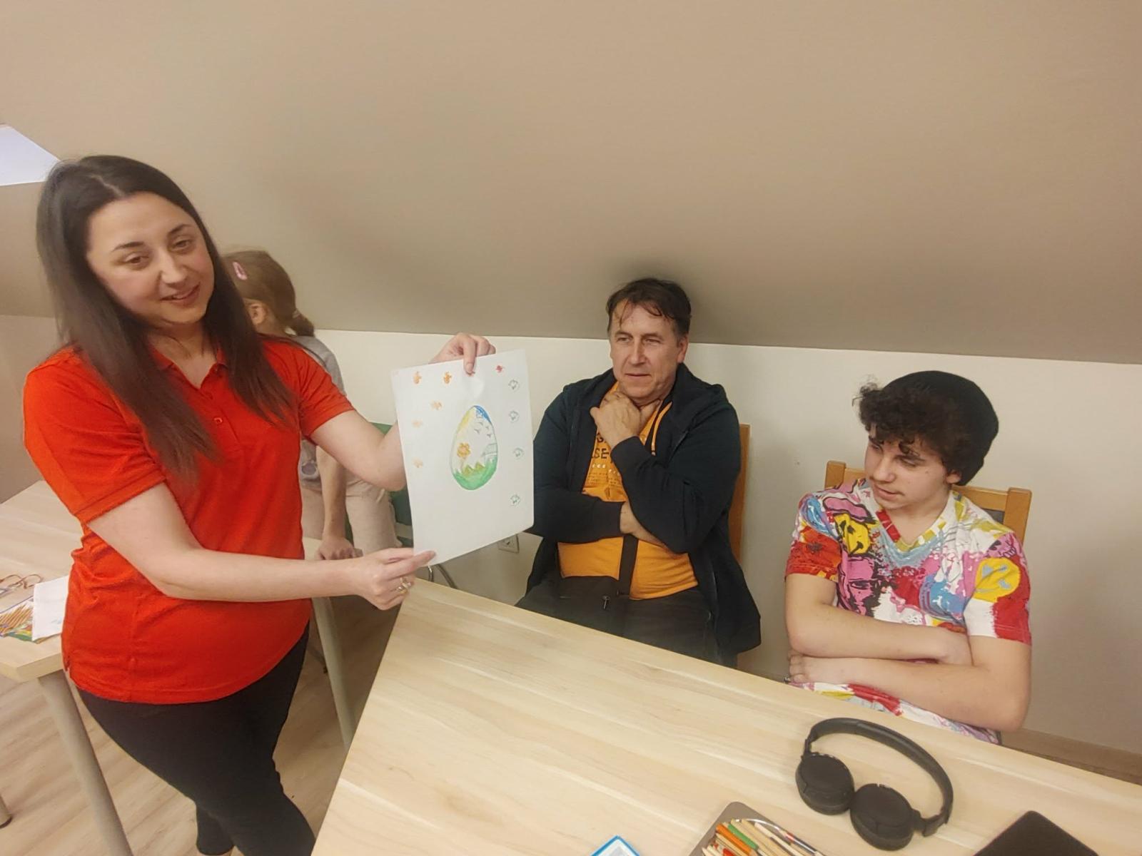 Délután debreceni lakásotthonainkból érkezett egy 10 fős, általános iskolásokból álló csoport. A fiatalok is elkészítették húsvéti rajzaikat, amiket a kicsikhez hasonlóan ajándékkal jutalmaztak a szervezők. A lakásotthonosok a szolgáltatóponton elérhető ruhaneműkből is lábbelikből is választhattak.