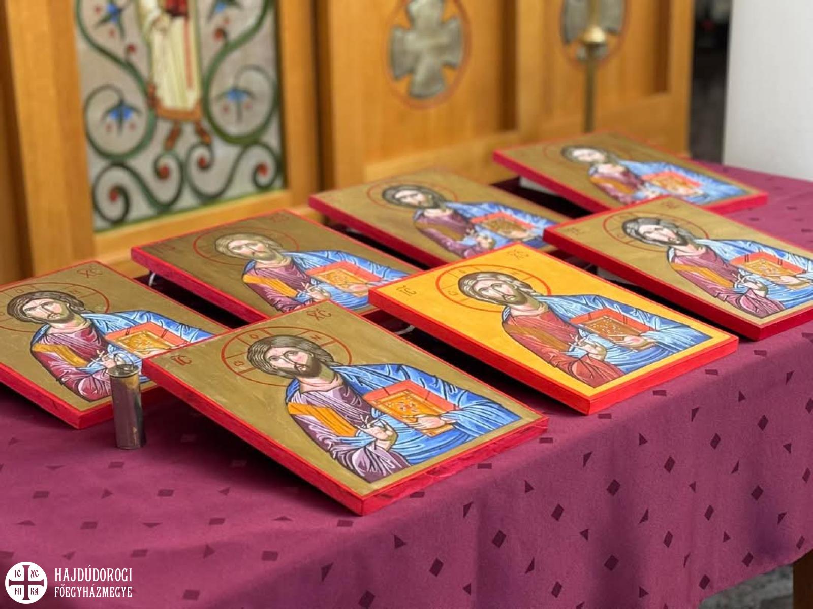 Ariel nagyon szépen, lépésről-lépésre vezetett be minket ebbe a világba, a krétai ikonfestészet világába, ahol arra vállalkoztunk, hogy együtt imában és közösségben, mi bizony megfestjük első Krisztus-ikonunkat, a tanító Jézust. Bár az ikonfestésnek szigorú szabályai vannak, csodálatos volt megtapasztalnunk, hogy ugyan mindannyian ugyanazt az ikont vettük példának, ugyanazokat az anyagokat használtuk és ugyanazokat az instrukciókat kaptuk, mégis minden alkotás mennyire egyedivé formálódott a kezeink alatt. Ugyanazt néztük, átszűrődve önmagunkon mégis máshogyan tudtuk kifejezni, ábrázolni az értünk megtestesült Krisztust.