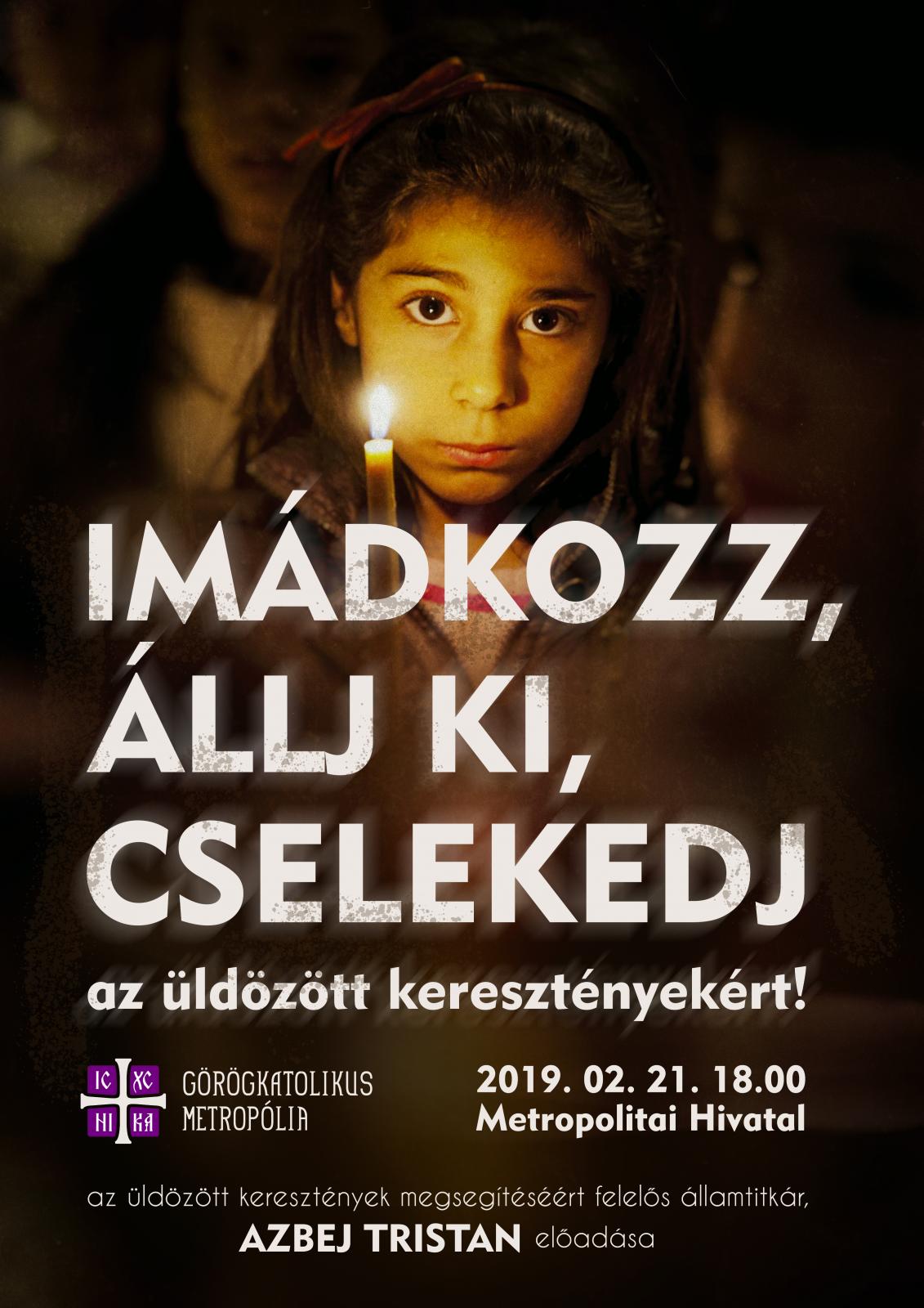 Dr. Azbej Tristan, a Miniszterelnökség üldözött keresztények megsegítéséért felelős államtitkára tart előadást 2019. február 21-én, 18 órától a Metropolitai Hivatalban. Több mint 80 országban kétszáz milliónál is több olyan ember él, akiket kereszténységük miatt üldöznek. Csak 2018-ban több mint négyezer keresztényt öltek meg a vallása miatt. Hogy hogyan segít a magyar állam a bajba jutottakon és mit tehetünk mi magyarok, arról beszél majd államtitkár úr. Szeretettel várjuk az érdeklődőket!