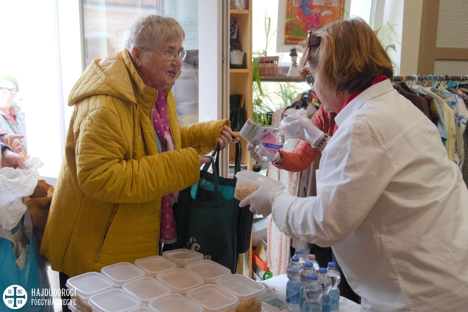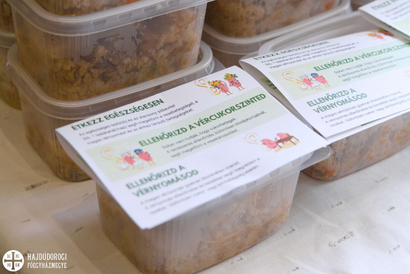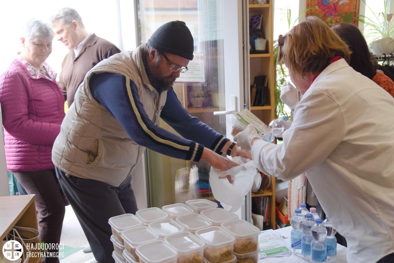 Az ételosztáson a frissen készült rizses húson kívül mást is kaptak a rászorulók. A szolgáltatópont egyik munkatársa ismét egy-egy ostyaszelettel készült. Dr. File Ibolya debreceni belgyógyász-nefrológus pedig a vese világnapja alkalmából 100 palack vizet ajánlott fel. Az ételre várakozók emellett egy szórólapot is kaptak a vese egészsége megőrzésének aranyszabályaival.