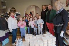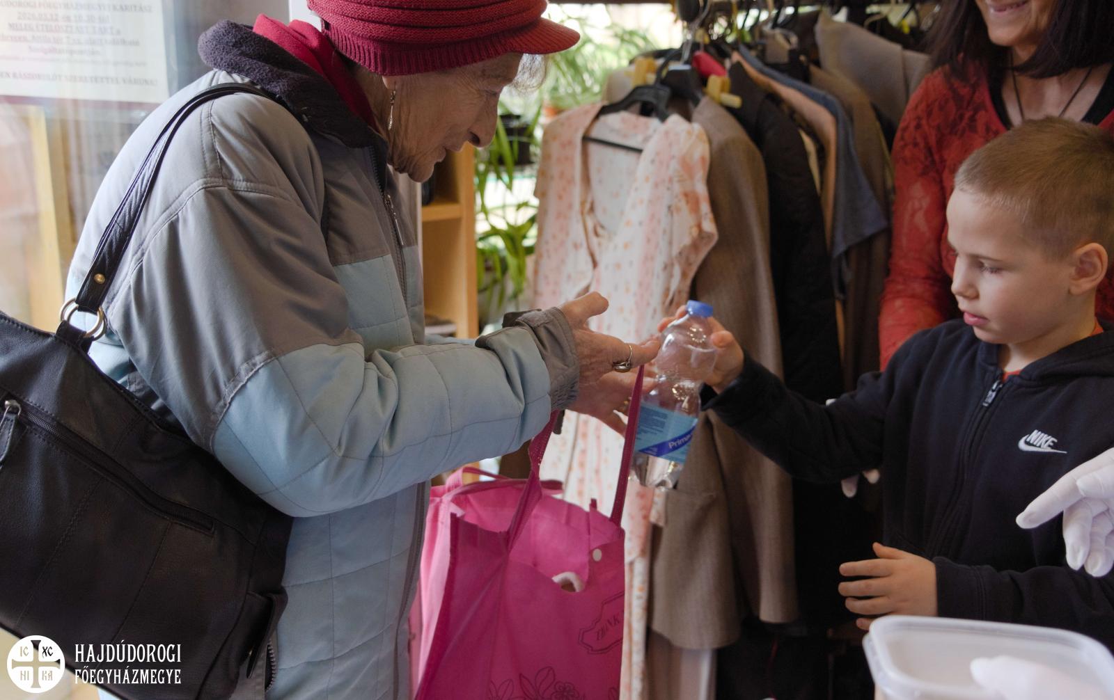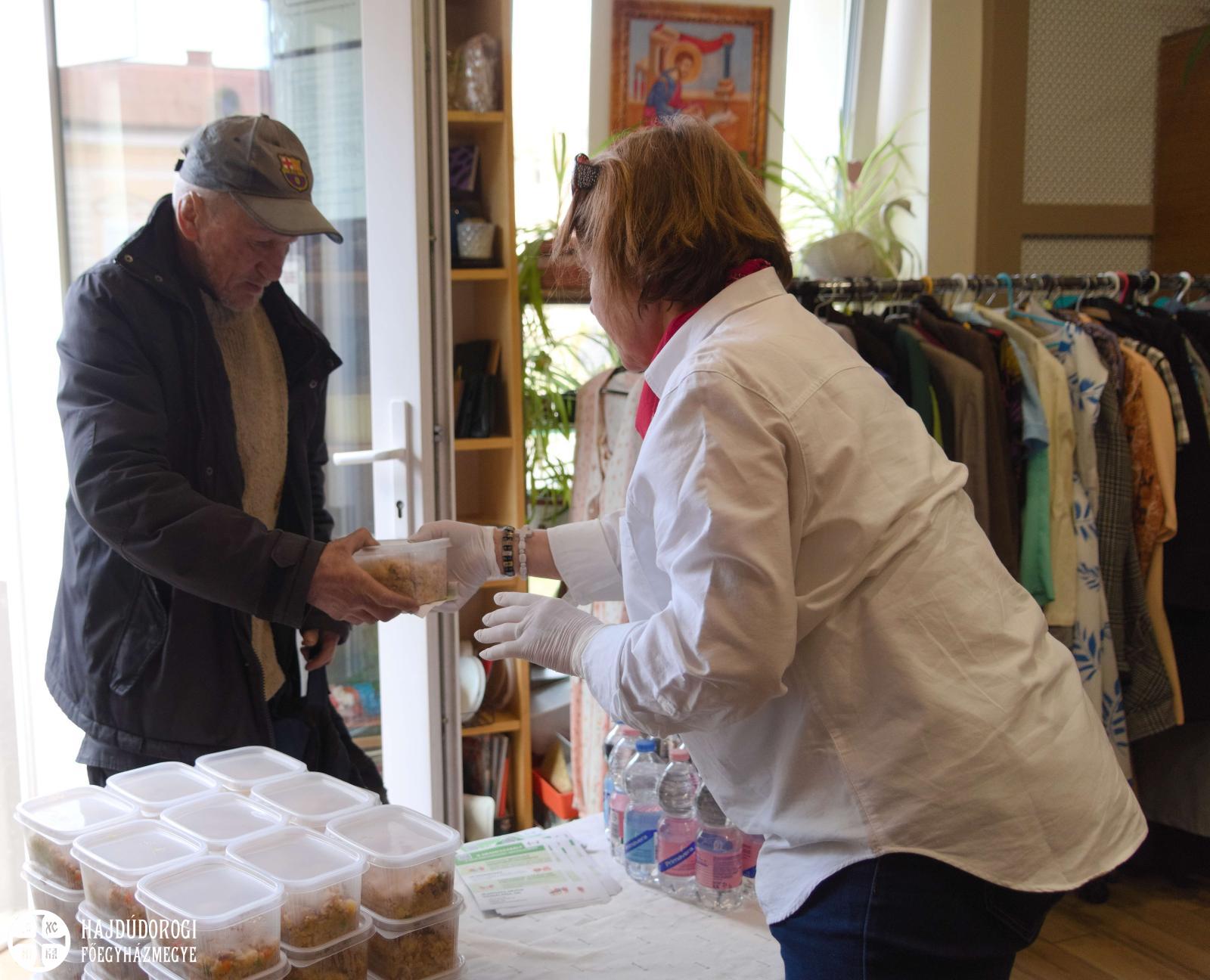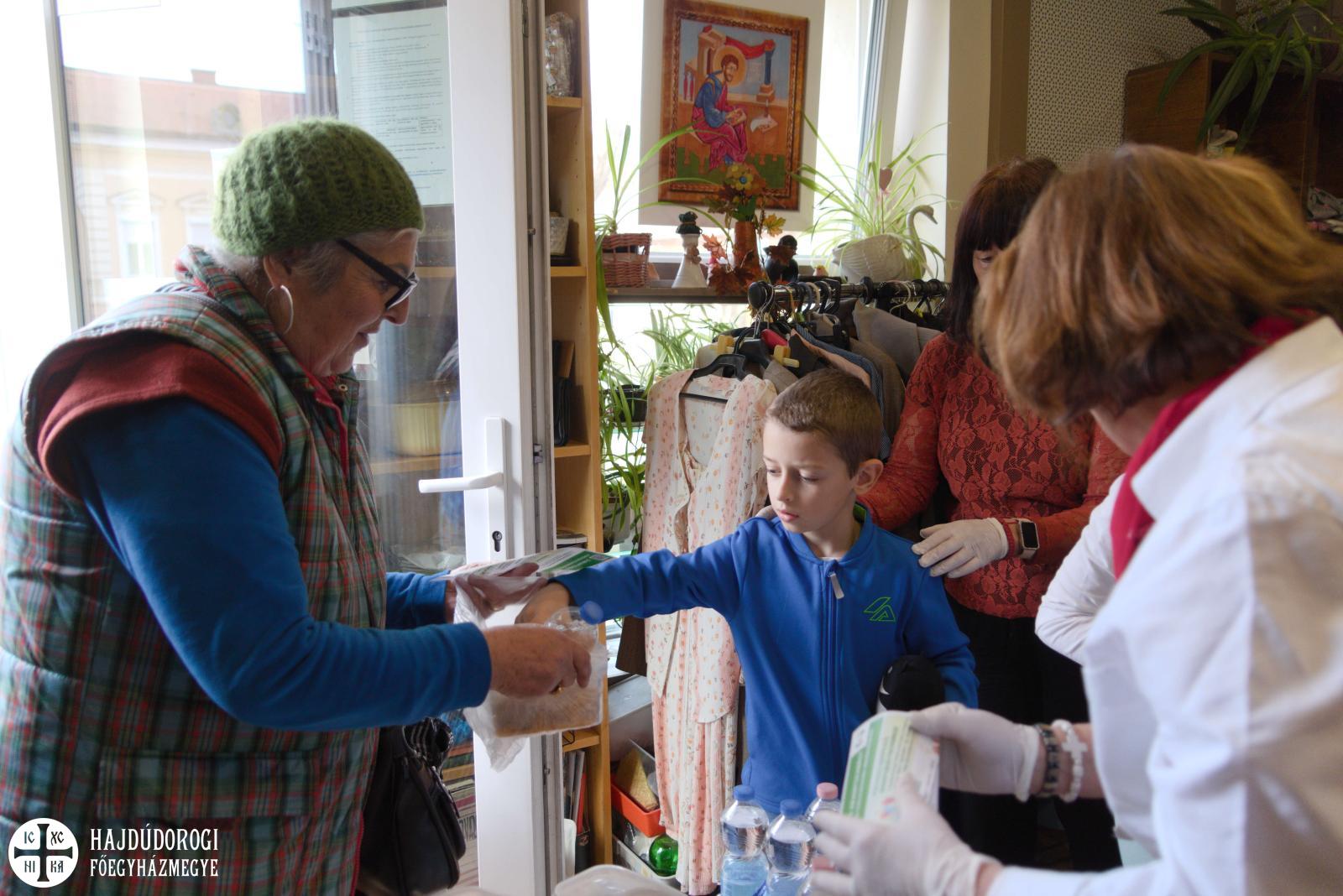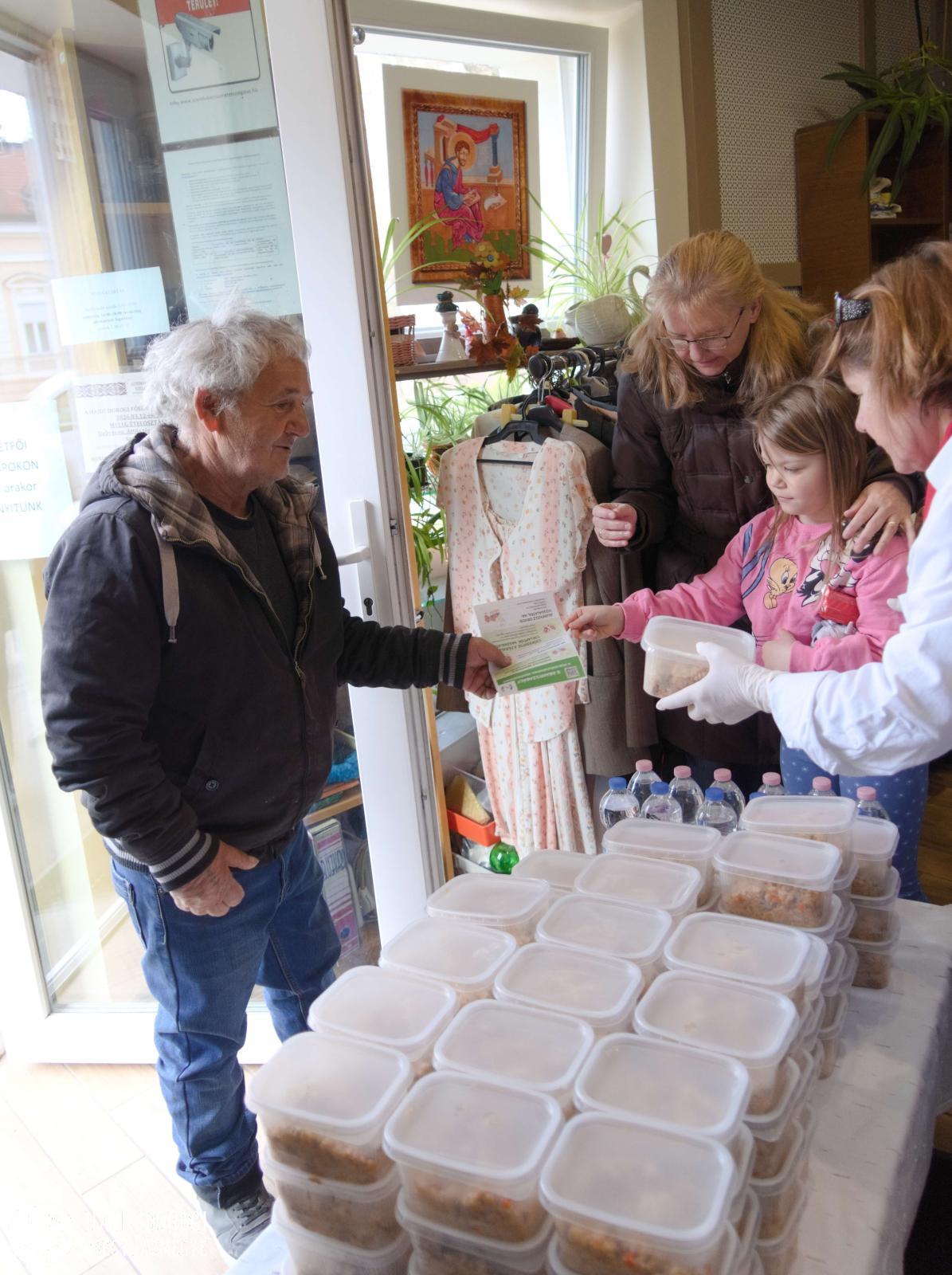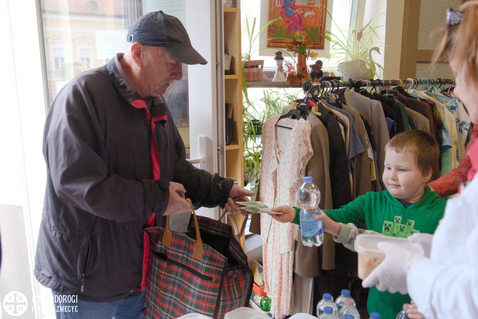 Az étel, a víz és a szórólap kiosztásában a Katica és a Maci csoport óvodásai is segítettek. A szolgáltatópont munkájáról és feladatairól Jaczkó Dániel atya, a főegyházmegyei karitász vezetője mesélt a gyerekeknek, hangsúlyozva, milyen fontos, hogy segítségére legyünk azoknak, akiknek nem telik ételre, italra, megfelelő ruházatra. Papp Anita, a szolgáltatópont munkatársa pedig egy rövid mesével szemléltette, hogyan segíthetünk másoknak kinőtt ruhadarabjaink elajándékozásával.