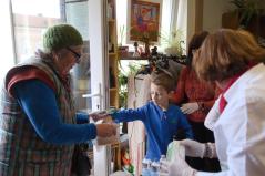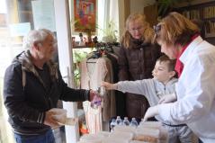 Már egy órával az ételosztás kezdete előtt sokan várakoztak a szolgáltatópont épületénél. De ezen a napon nemcsak rászorulók érkeztek hozzánk: a Szent Lukács Görögkatolikus Szeretetszolgálat ugyanis húsvétváró rajzversenyt szervezett gyerekek számára.
