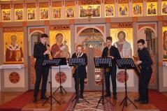 A Kodály Zoltán Zeneművészeti Szakgimnázium szaxofon kvartettje, Bencze Mátéval az élen. Páratlan zenei élményt nyújtottak.