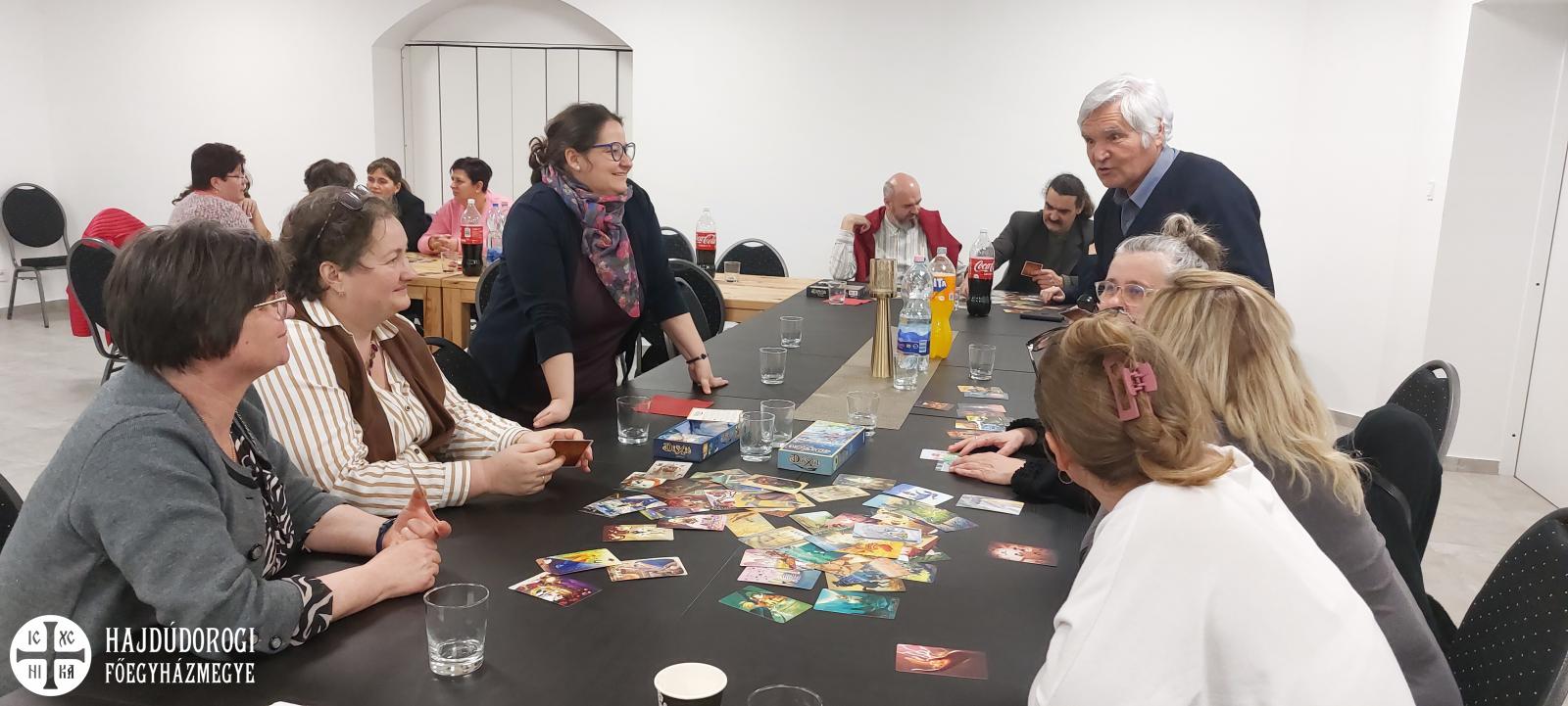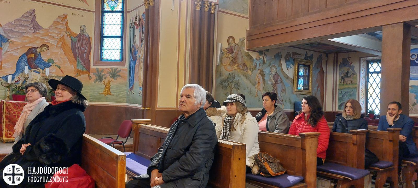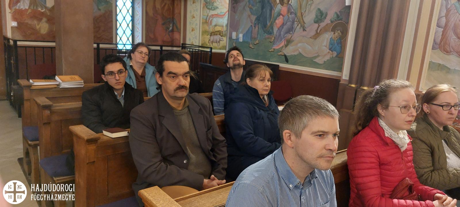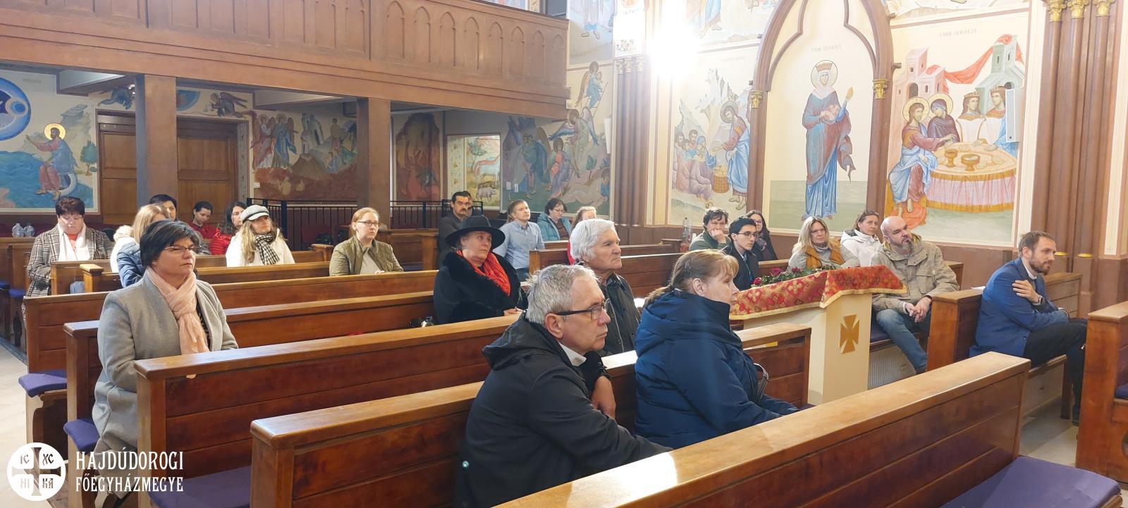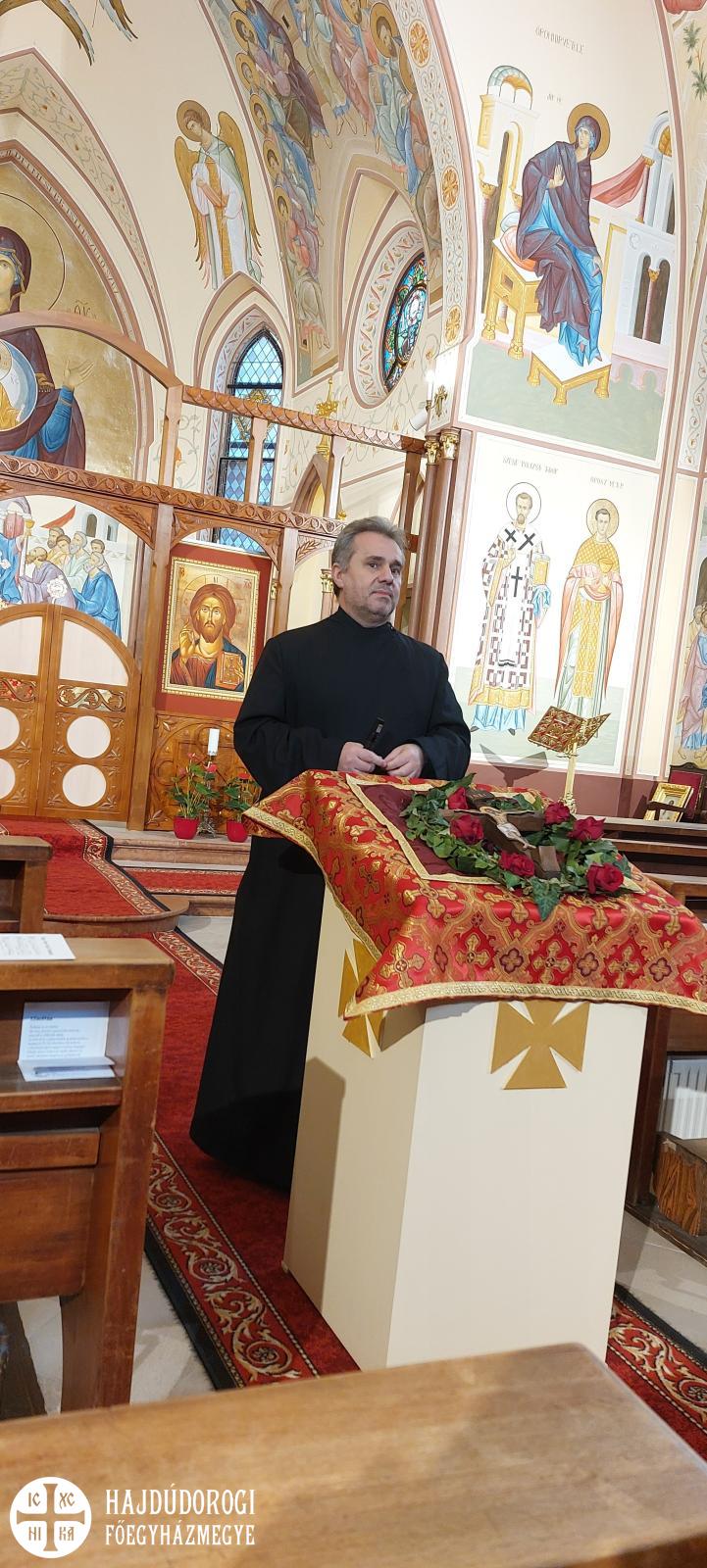 Dr. Papp Miklós atya tartott számukra templomi tárlatvezetést, lelki szemeik előtt elevenedett meg az ikonosztázion, majd közösen hangolódtak a lelki napra. Az ószövetségi és újszövetségi ikonpárokról mesélt a hitoktatóknak, illetve abban igyekezett ötletet adni számukra, hogyan tudják életükben kamatoztatni ezeket a tanításokat.