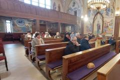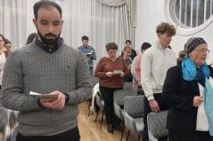 Délután a Magyar Zene Házát vették birtokba a résztvevők, este pedig már Előszenteltek Liturgiáján vettek részt a központban. Takács Gusztáv atya igyekezett a hit kérdését körbe járni közösen, mit is jelent a hit a hitoktatók számára?