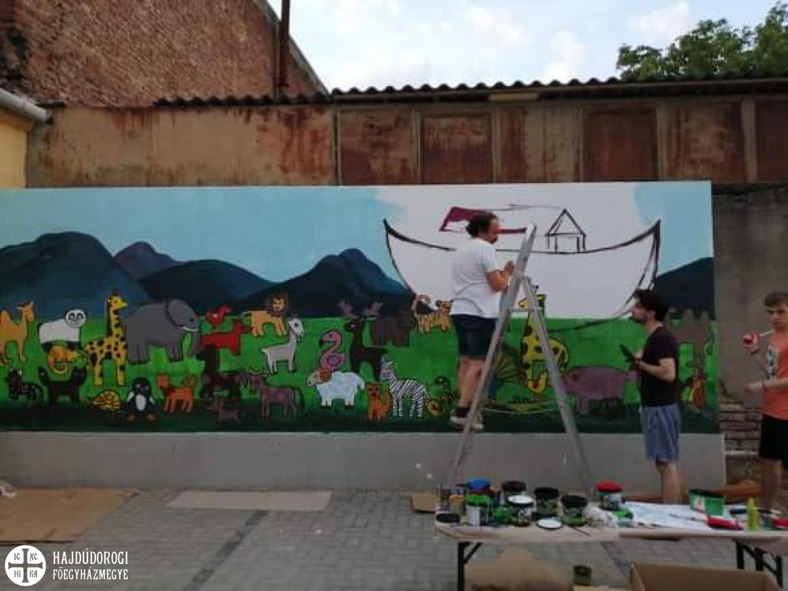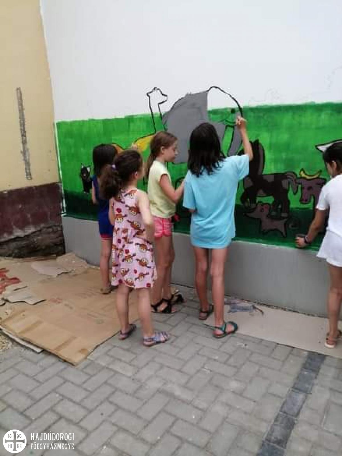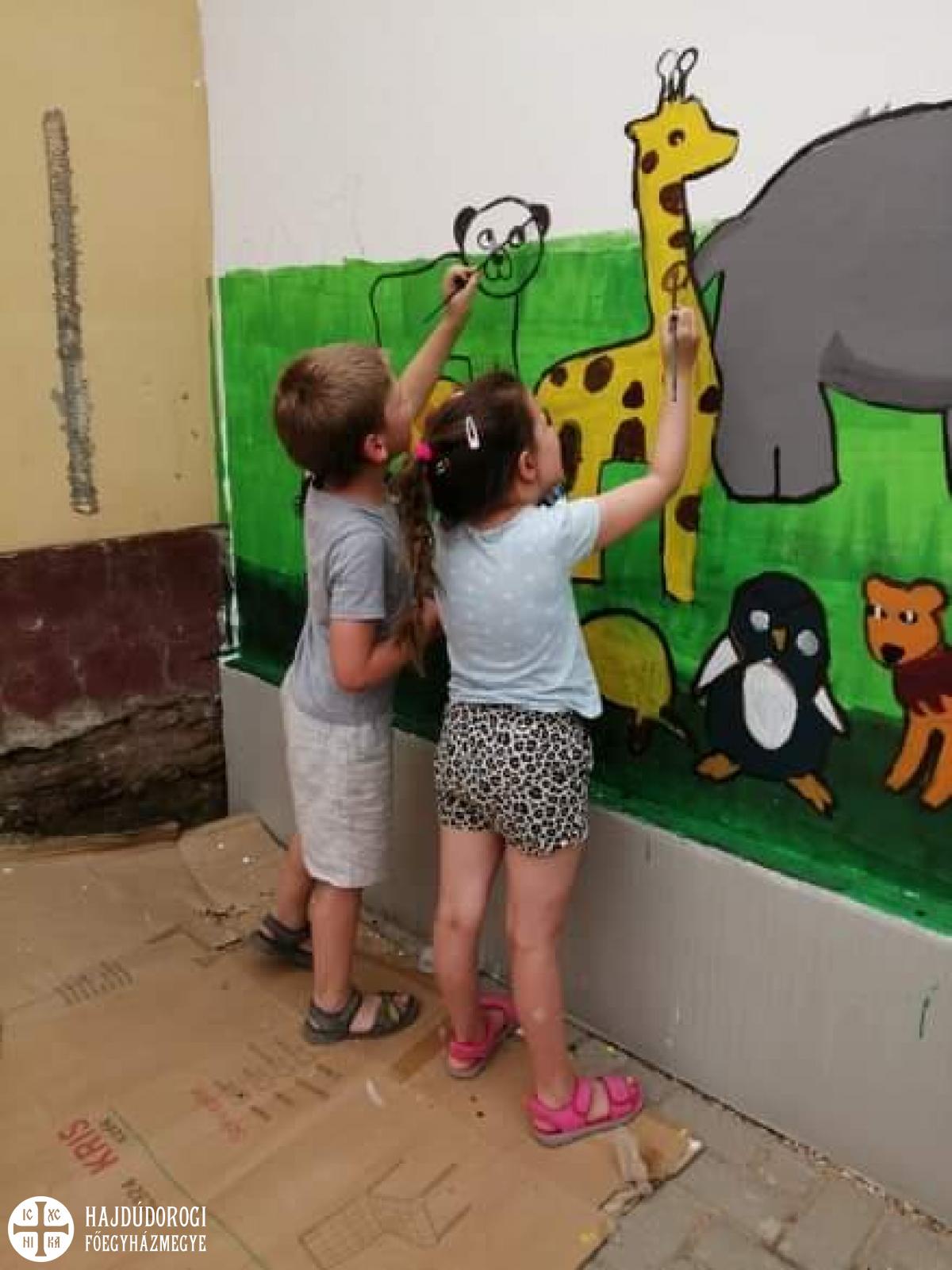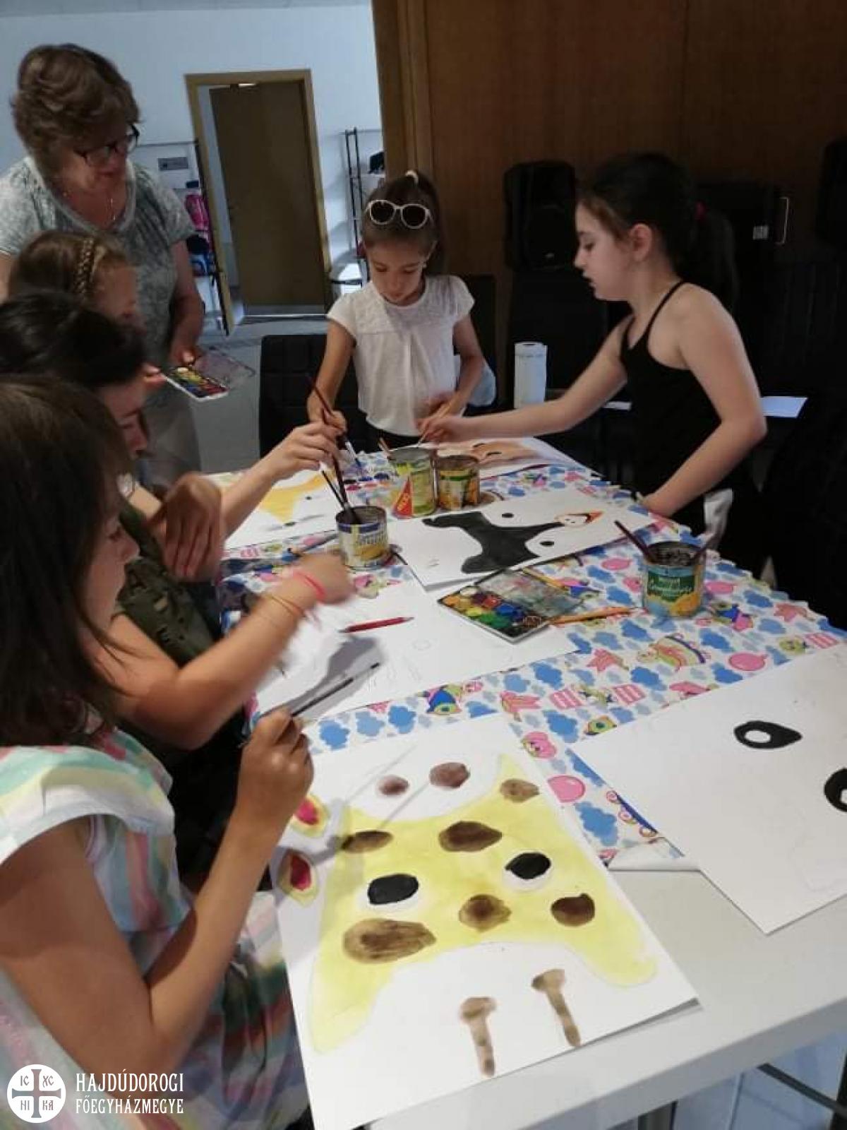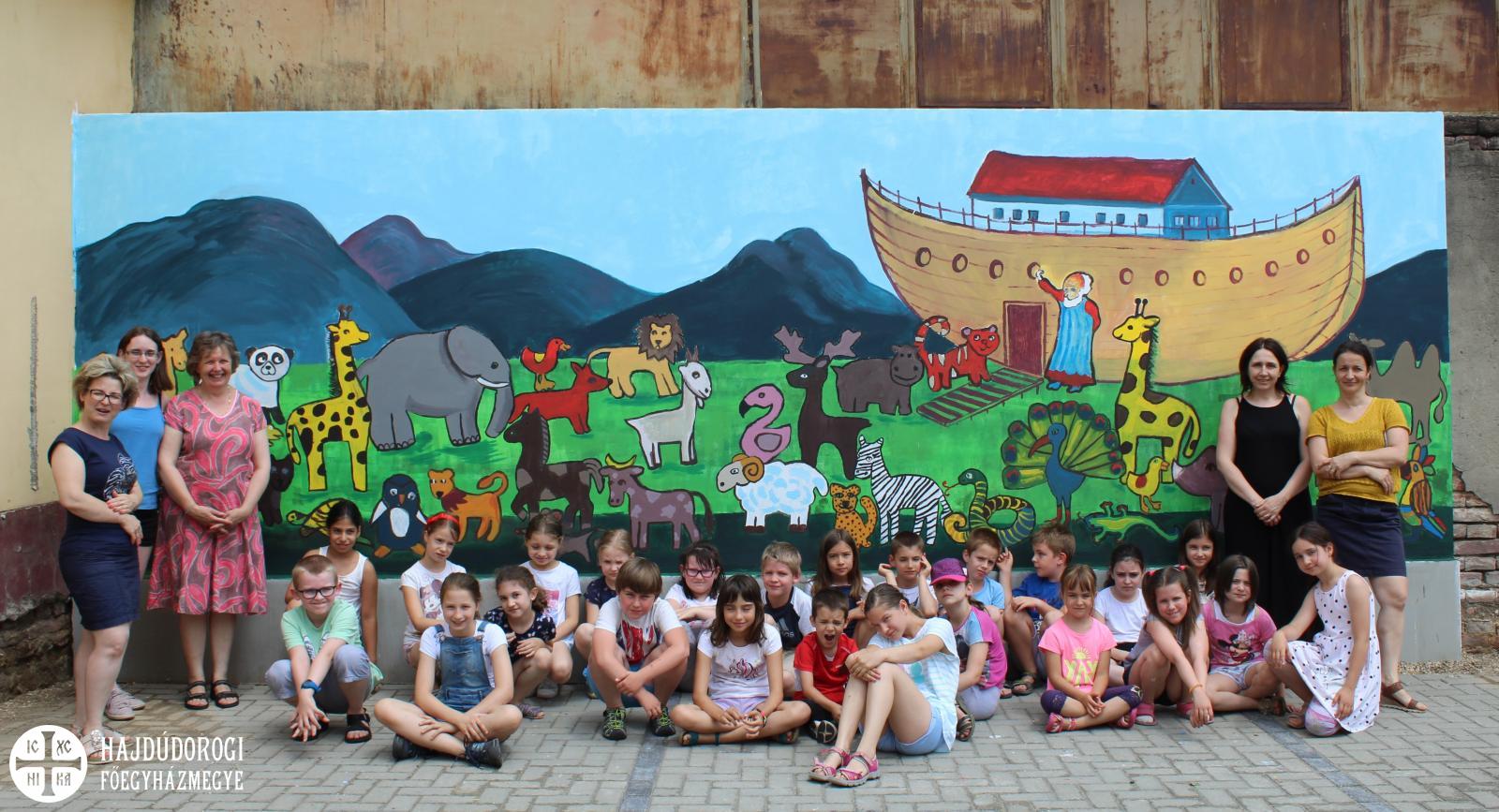 Az idei témakör Noé bárkája volt, így tapasztalatszerzés céljából még az állatkertbe is ellátogattak, hogy mindenki könnyebben készíthesse el azt az állatot, amelyet később egy nagy, közös falfestményen megörökített. A táborban nemcsak rajzoltak, de különböző technikákat is megismerhettek a gyerekek, emellett szabadidős programok is voltak: mozizás, drámajáték, kavicsfestés. Az egyhetes program során Tóthné Nelli, Sesztákné Mariann, Gardáné Mónika és Halász Kriszta pedagógusok segítették a közös munkát.