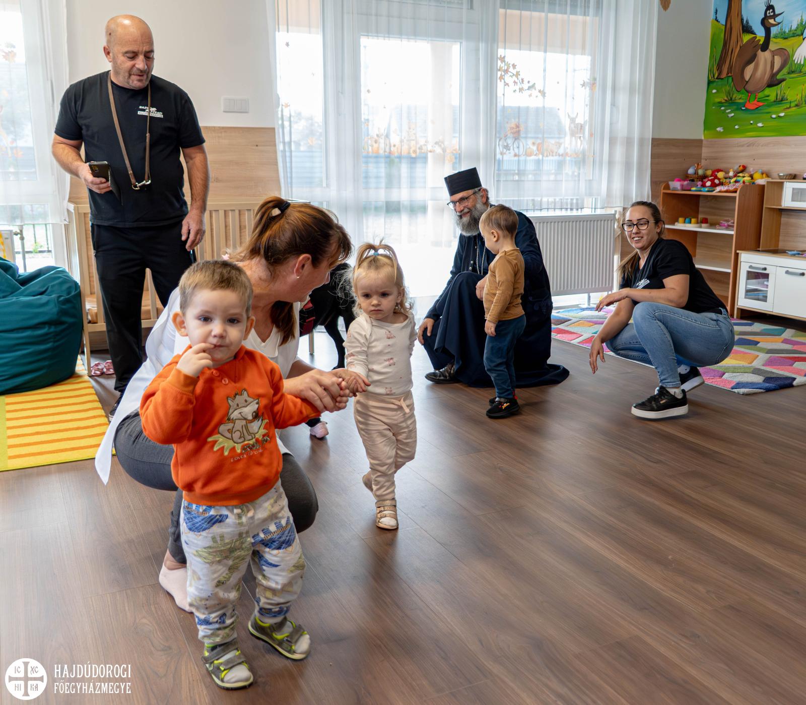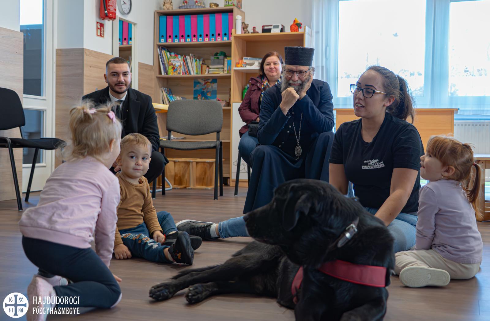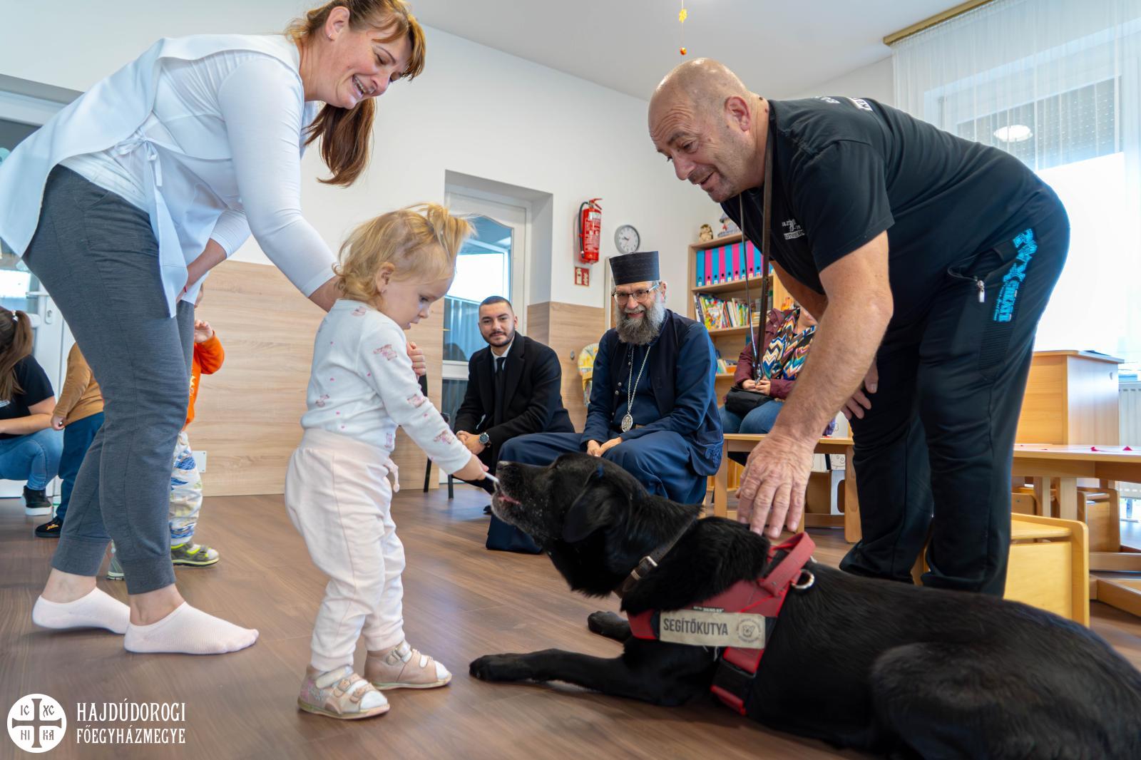 Kocsis Fülöp metropolita ellátogatott a helyi református bölcsődébe és óvodába is, ahol személyesen is megtekintette az ott zajló fejlesztő foglalkozásokat. Kiemelt figyelmet kapott a Bazsó Team által vezetett kutyaterápiás program, amelynek célja a gyermekek érzelmi és szociális készségeinek fejlesztése. A metropolita örömmel vett részt a foglalkozáson, és elismerését fejezte ki a nevelők és segítők munkája iránt. A kutyaterápiás foglalkozásokat a Hajdúdorogi Főegyházmegye támogatásával valósítják meg, amely ezzel is kifejezi elkötelezettségét a legkisebbek fejlesztése és a különböző felekezetek közötti együttműködés iránt. A látogatás megerősítette a közösséget abban, hogy az egyház jelenléte nemcsak lelki, hanem gyakorlati segítséget is jelent a mindennapokban.