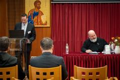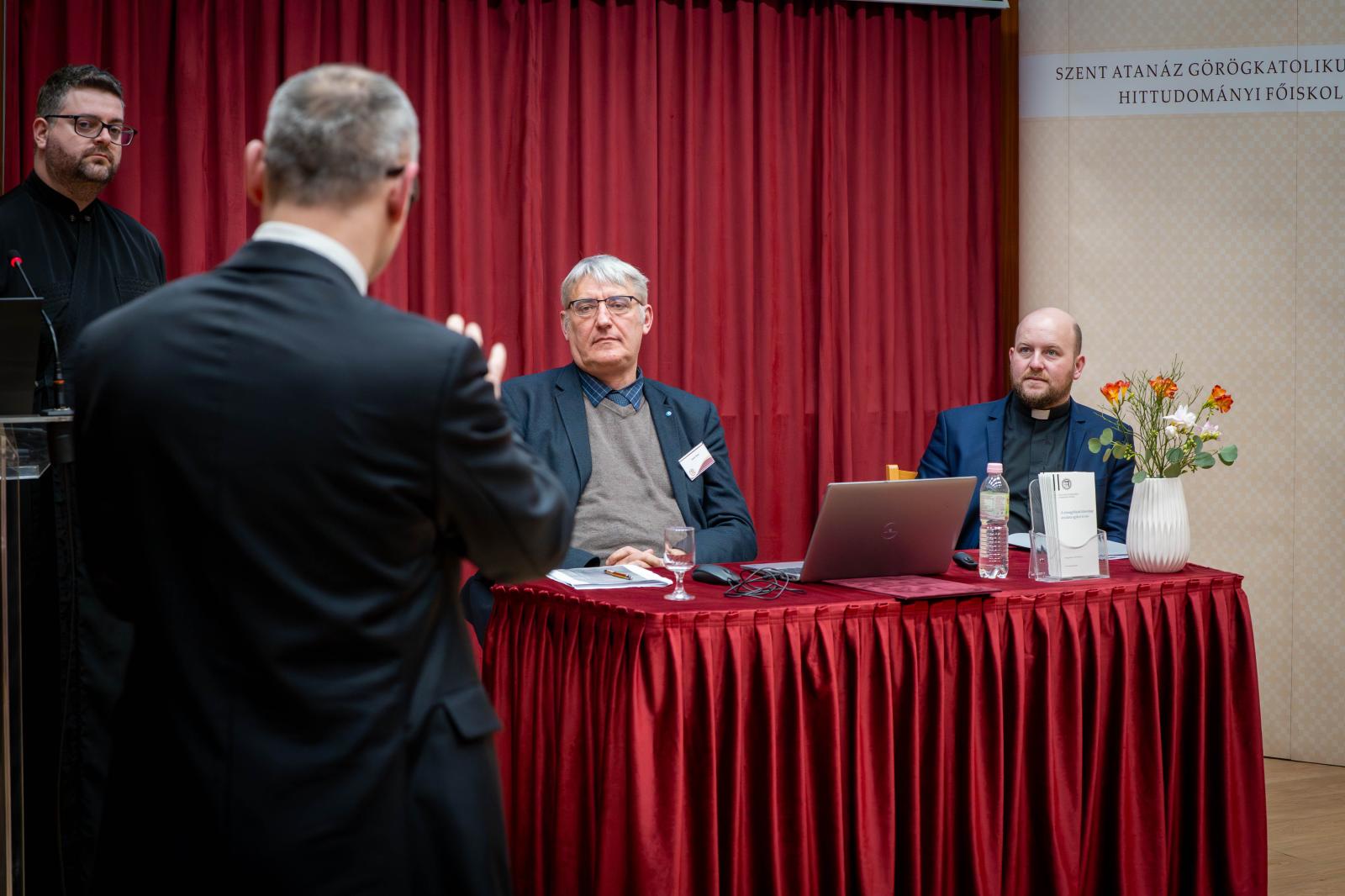 Galambvári Péter délelőtti szekcióban elhangzott előadásának címe Az exarchátus mint részegyház eredete és mai szabályozása volt.