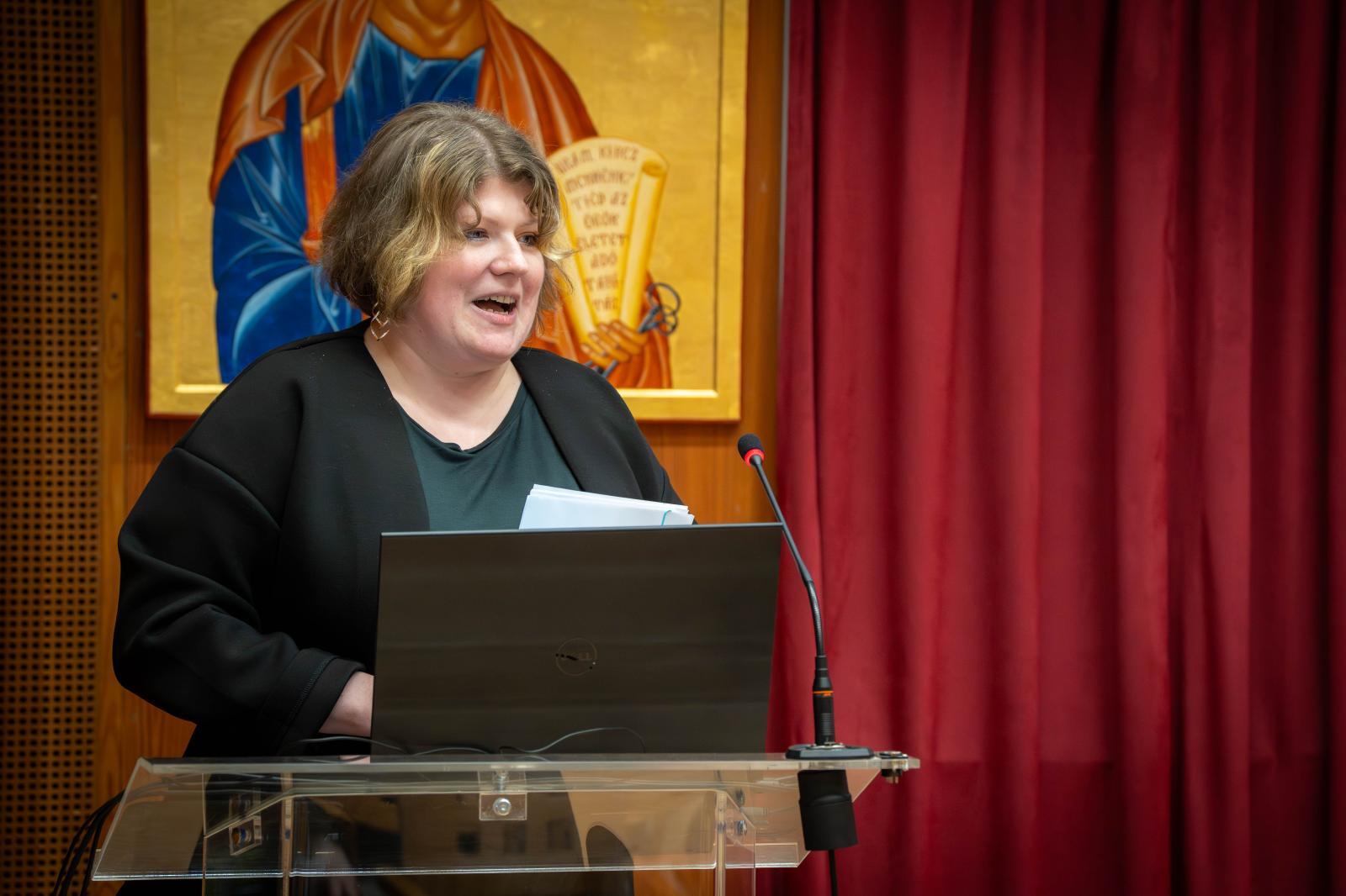 A délután során Nagy Tamás atya, a Miskolci Egyházmegye bírósági helynöke vezette fel az előadókat. A délutáni szekcióban elsőként Sereghy Xénia, a linzi katolikus egyetem adjunktusa A rítusordinariátus szerepe és sajátos kánonjogi vonásairól tartott előadást.