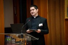 A délelőtti szekciót Tóth László, a debreceni Szent Anna Főplébánia káplánja, a Pázmány Péter Katolikus Egyetem Hittudományi Karának doktorandusza zárta, aki A mérki és debreceni apostoli kormányzóság című kutatási tervét mutatta be.