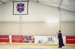 Biró István parókus atya pedig rendhagyó módon: korcsolyán állva áldott meg az új funkciókkal ellátott pályát.