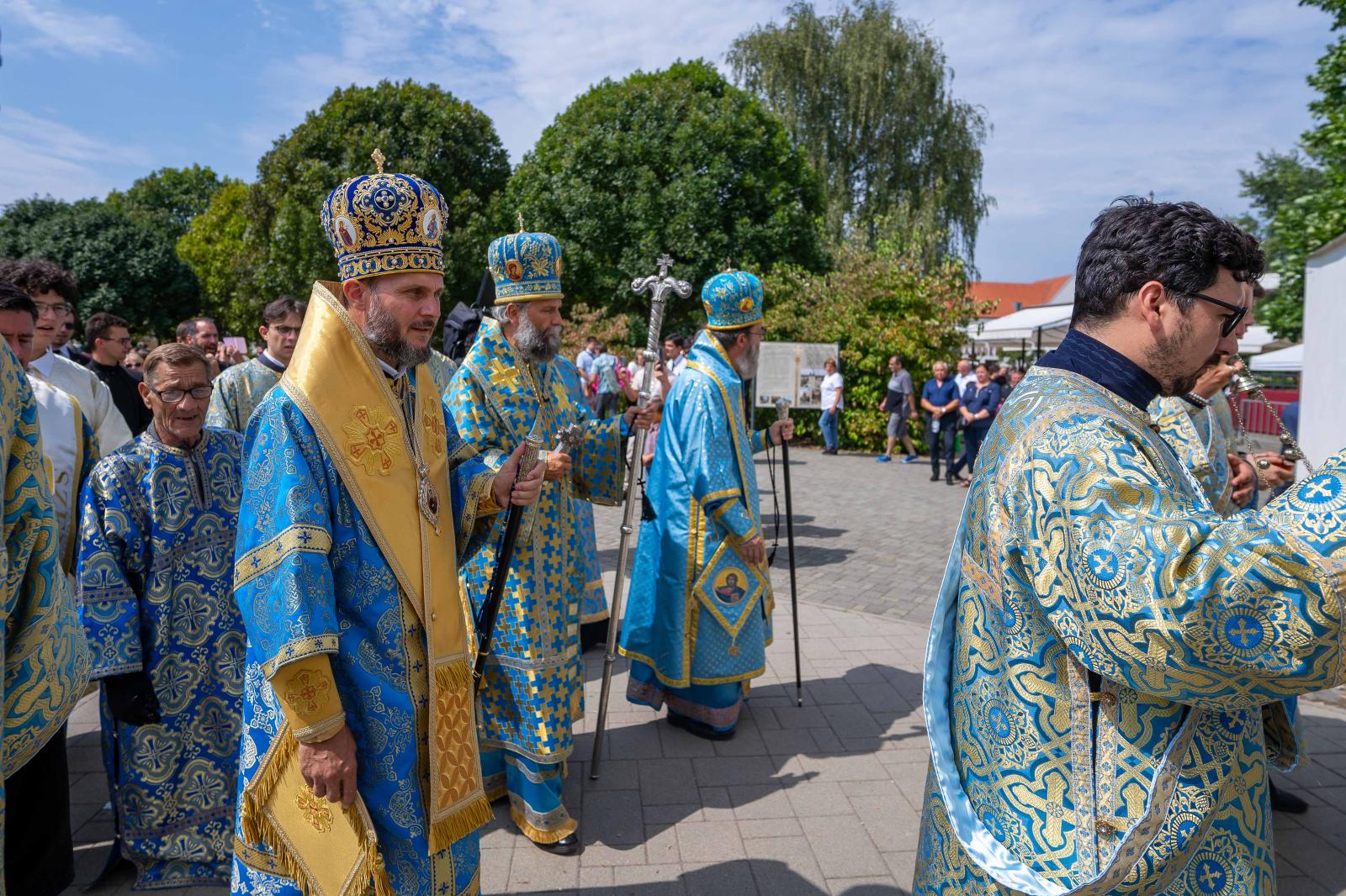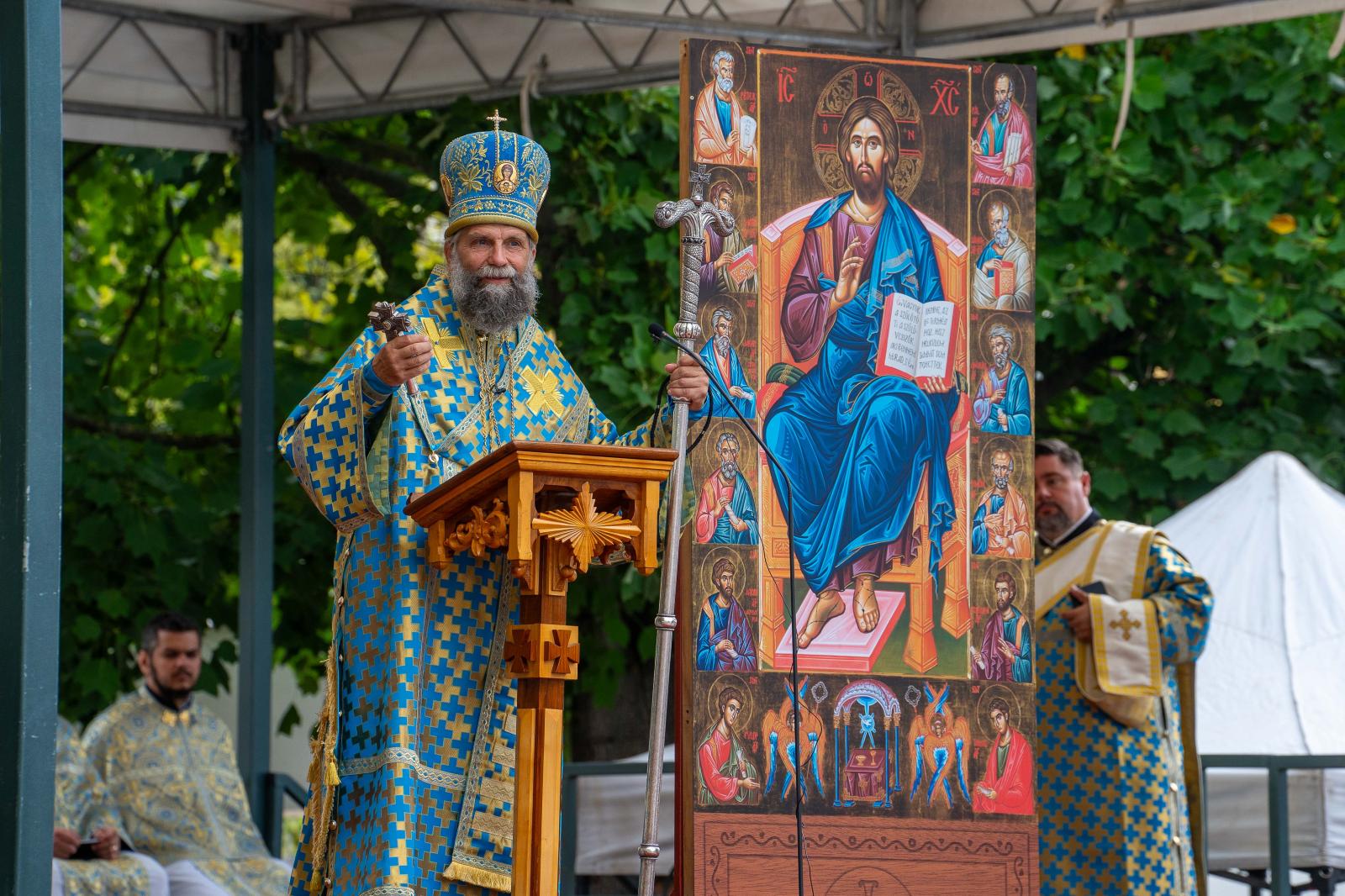 A külső, tábori oltárhoz a liturgia kezdetét jelző harangszó alatt hosszú sorban vonult fel a papság és az asszisztencia a három görögkatolikus főpásztor, Kocsis Fülöp érsek-metropolita, dr. Orosz Atanáz miskolci megyéspüspök és Szocska A. Ábel nyíregyházi megyéspüspök előtt.
