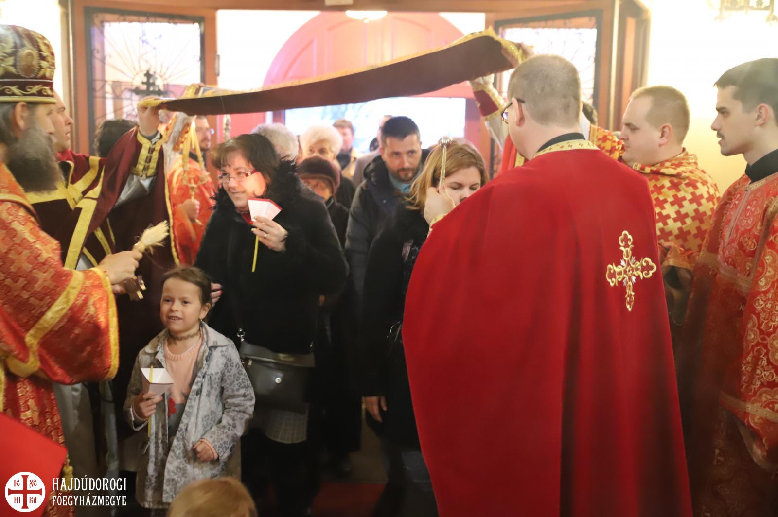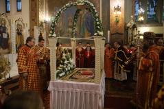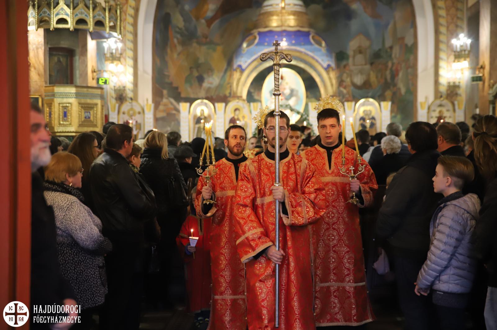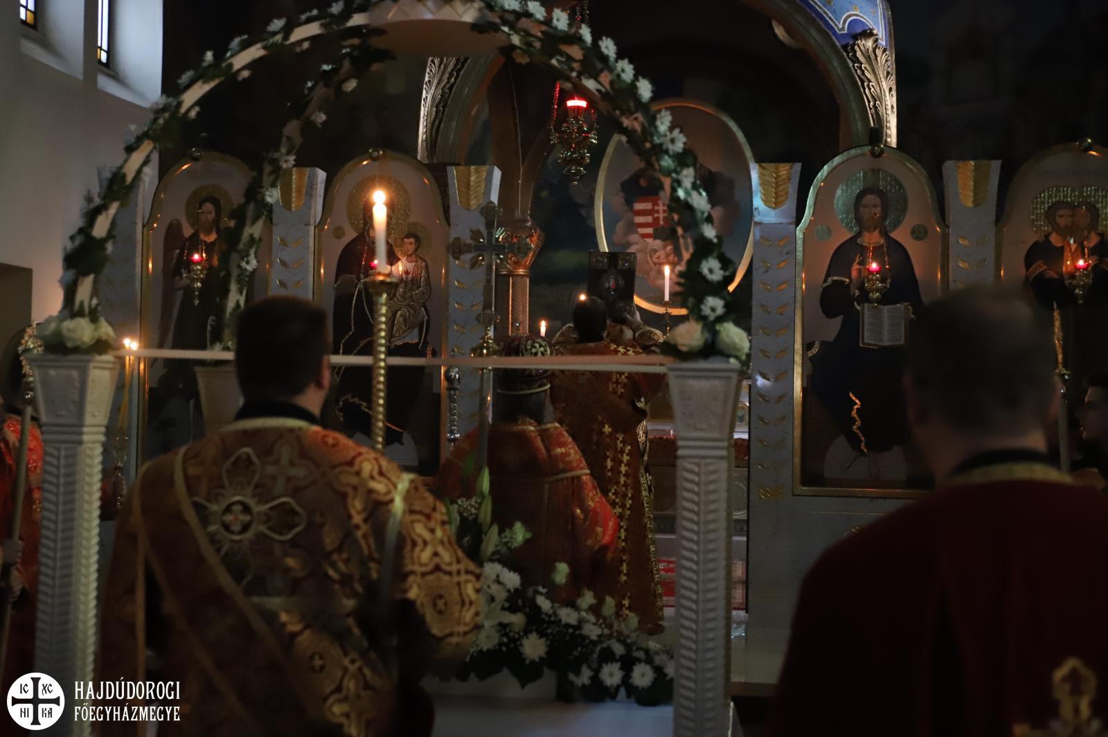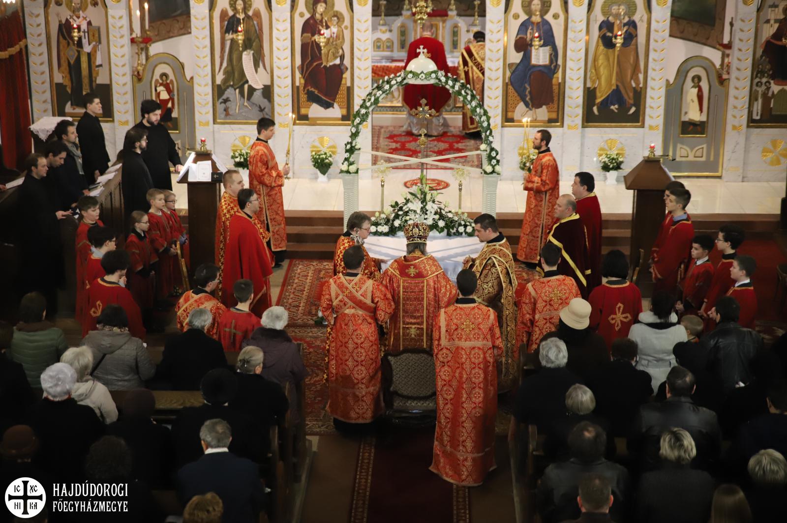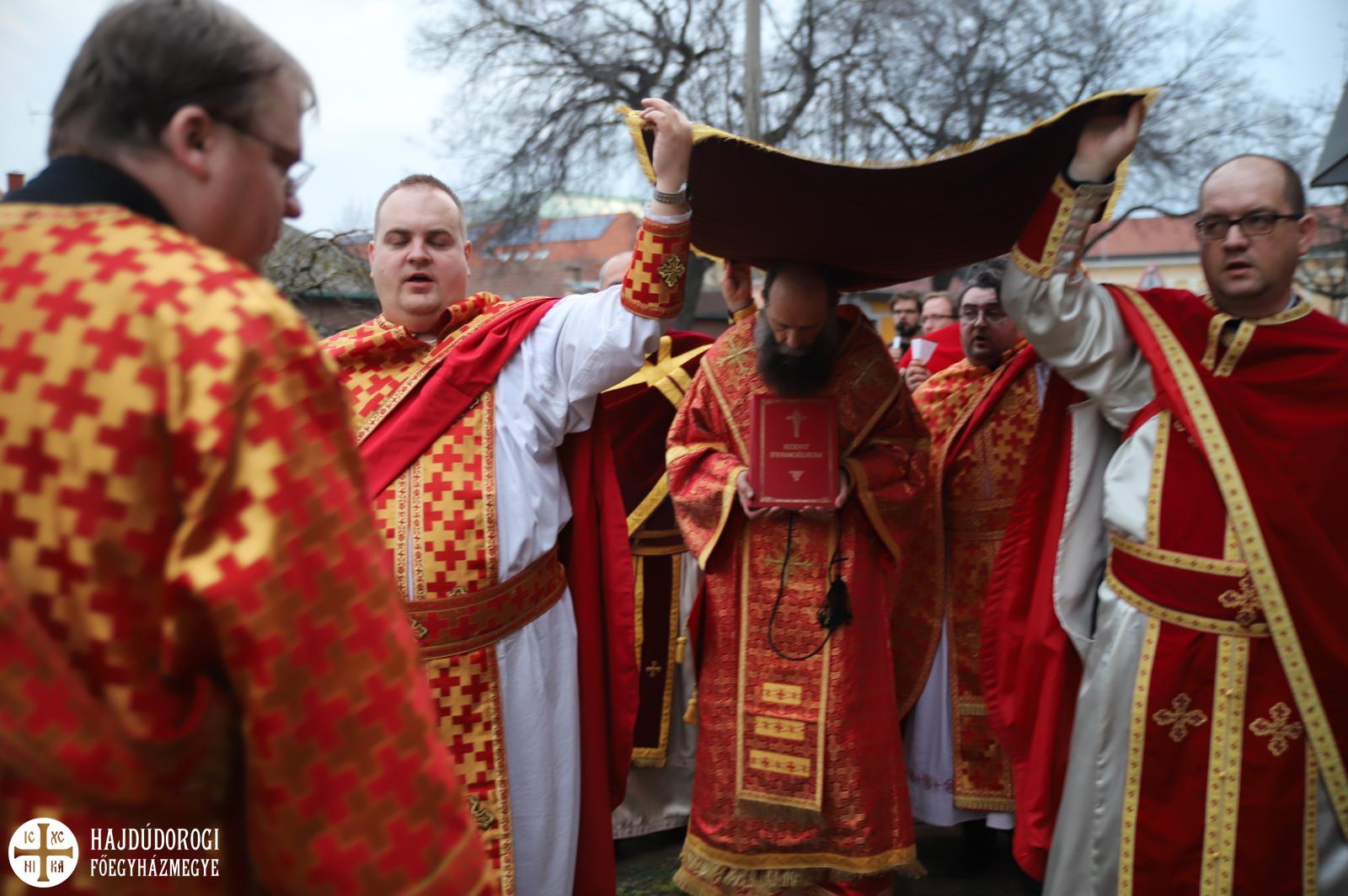 A sírbatételi vecsernye után a szokásos körmenet indult el az Attila téri főszékesegyház körül, melynek végén érsek atyától és Seszták István főhelynöktől áldást kaptak a hívek, akik aztán csókkal illették a keresztet. A szertartás a plascsenyicát (sírlepel) elhelyezésével zárult, ami előtt térdre borulva imádkoztak a résztvevők.
