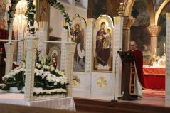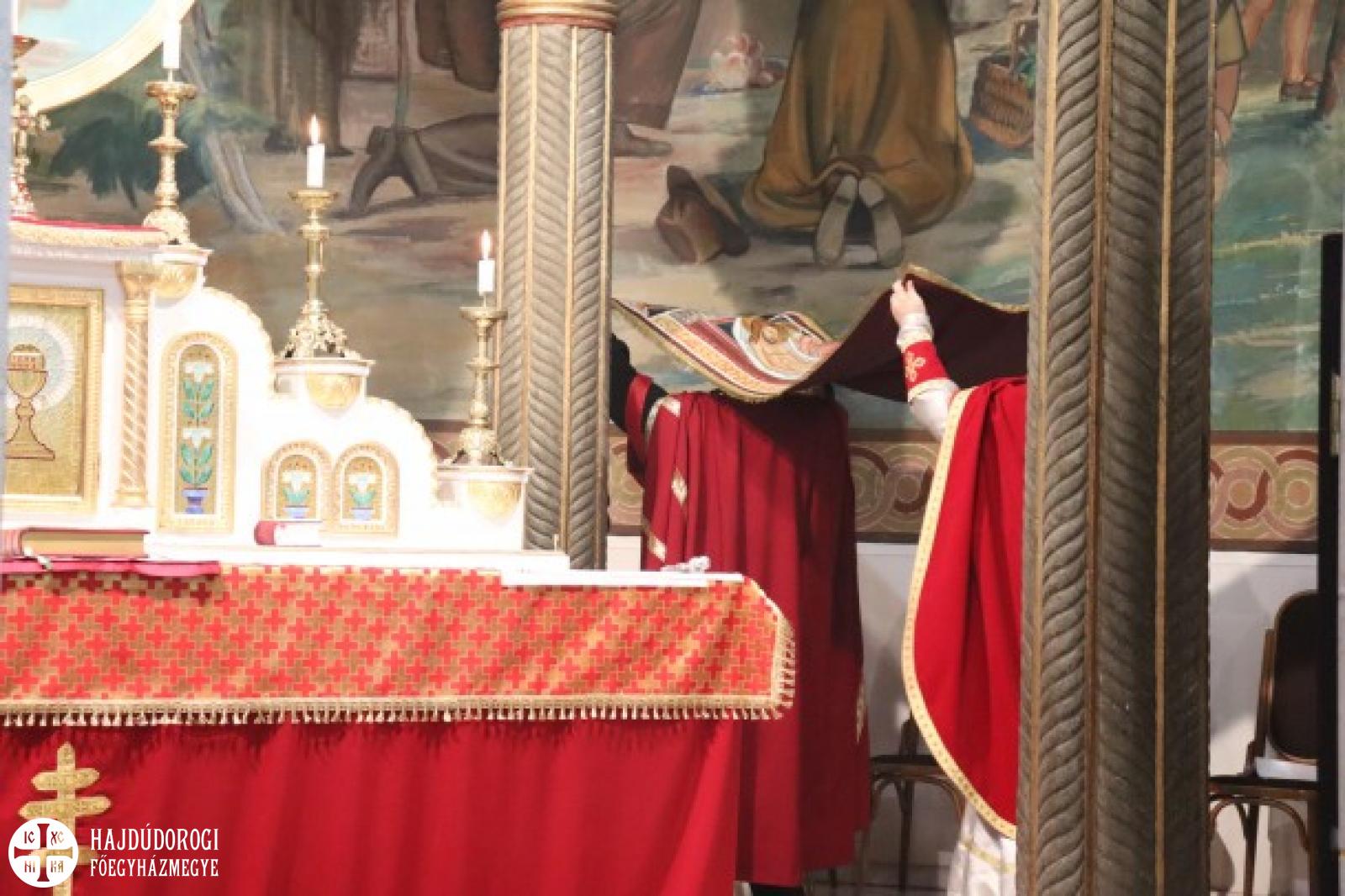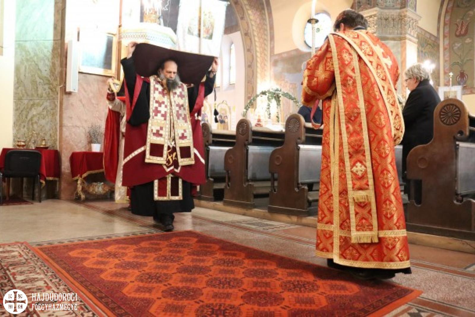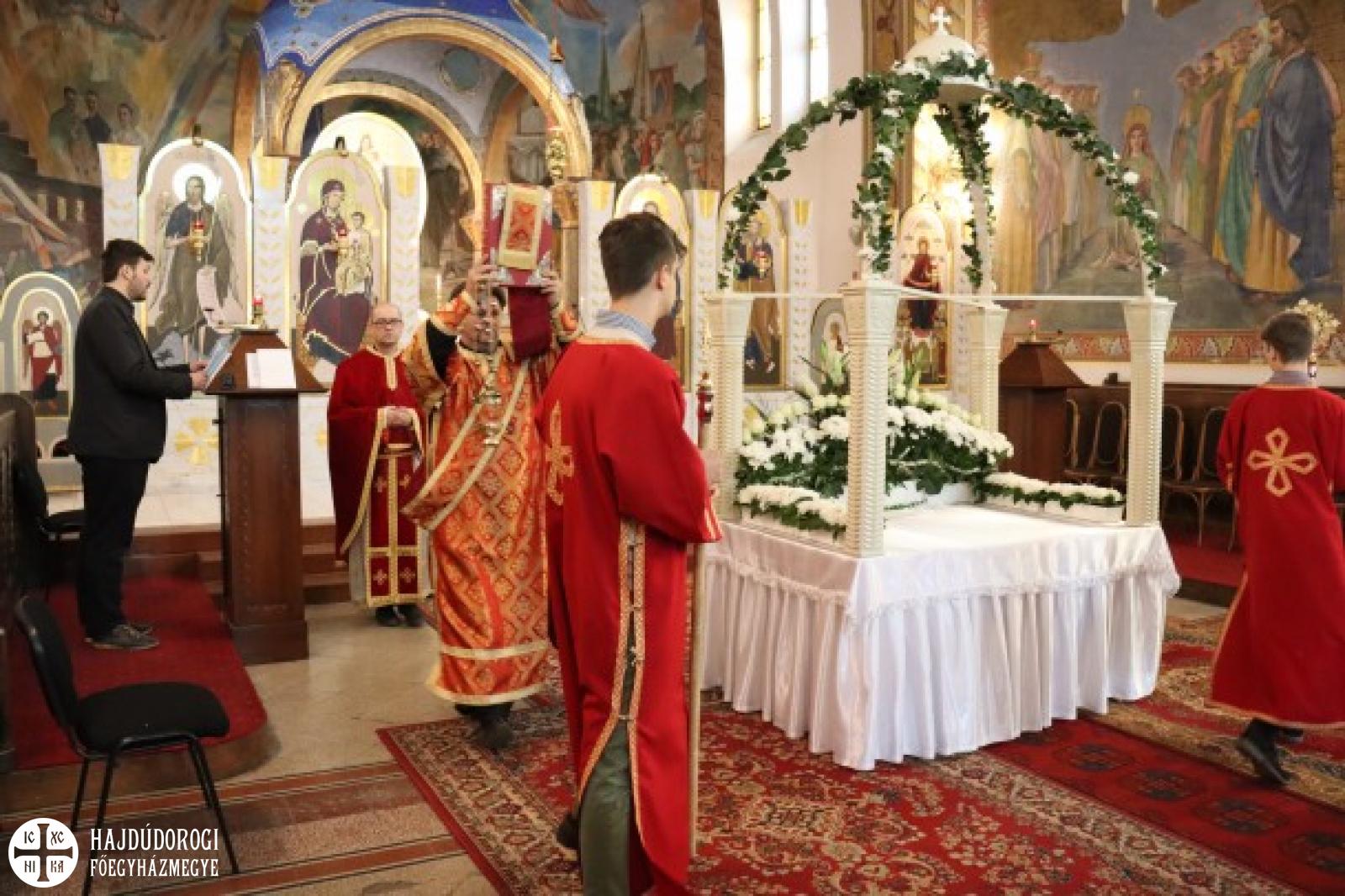 A vecsernye végén Kocsis Fülöp metropolita megtömjénezte az oltárra terített, Krisztus testét ábrázoló plascsenyicát (sírlepel), amit aztán a magasba emelve vittek körbe – idén csak a főszékesegyházon belül, ugyanis a koronavírus-járvány miatt elmaradt a körmenet. Majd ezt a liturgikus kendőt elhelyezték a virágokkal díszített szentsíron. A templom egész éjjel nyitva lesz, idén azonban metropolita atya külön kérte a híveket, hogy ne érintsék meg a leplet.