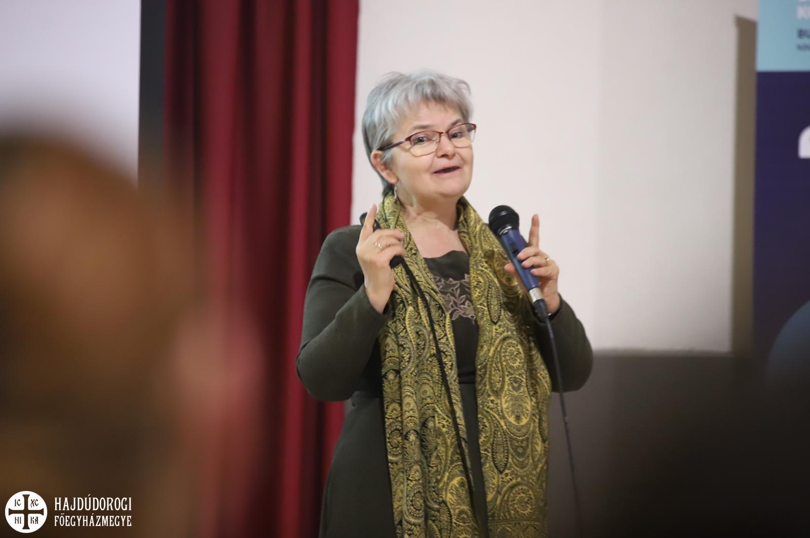 A Házasság hete másik kiemelt előadója Uzsalyné dr. Pécsi Rita, neveléskutató volt. Egy igazi energiabomba a szakember, aki már hallotta őt személyesen, az valószínűleg nehezen alszik el, mikor hazaér a program után. Miért? Mert számtalan kérdés vetődik fel benne a hallottakkal kapcsolatban. Az előadásnak ugyanis otthon sincs vége…a tükör, amit ismét elénk tartott, kegyetlenül őszinte volt. Humor nélkül pedig nem lehet magunkévá tenni a szakember gondolatait.