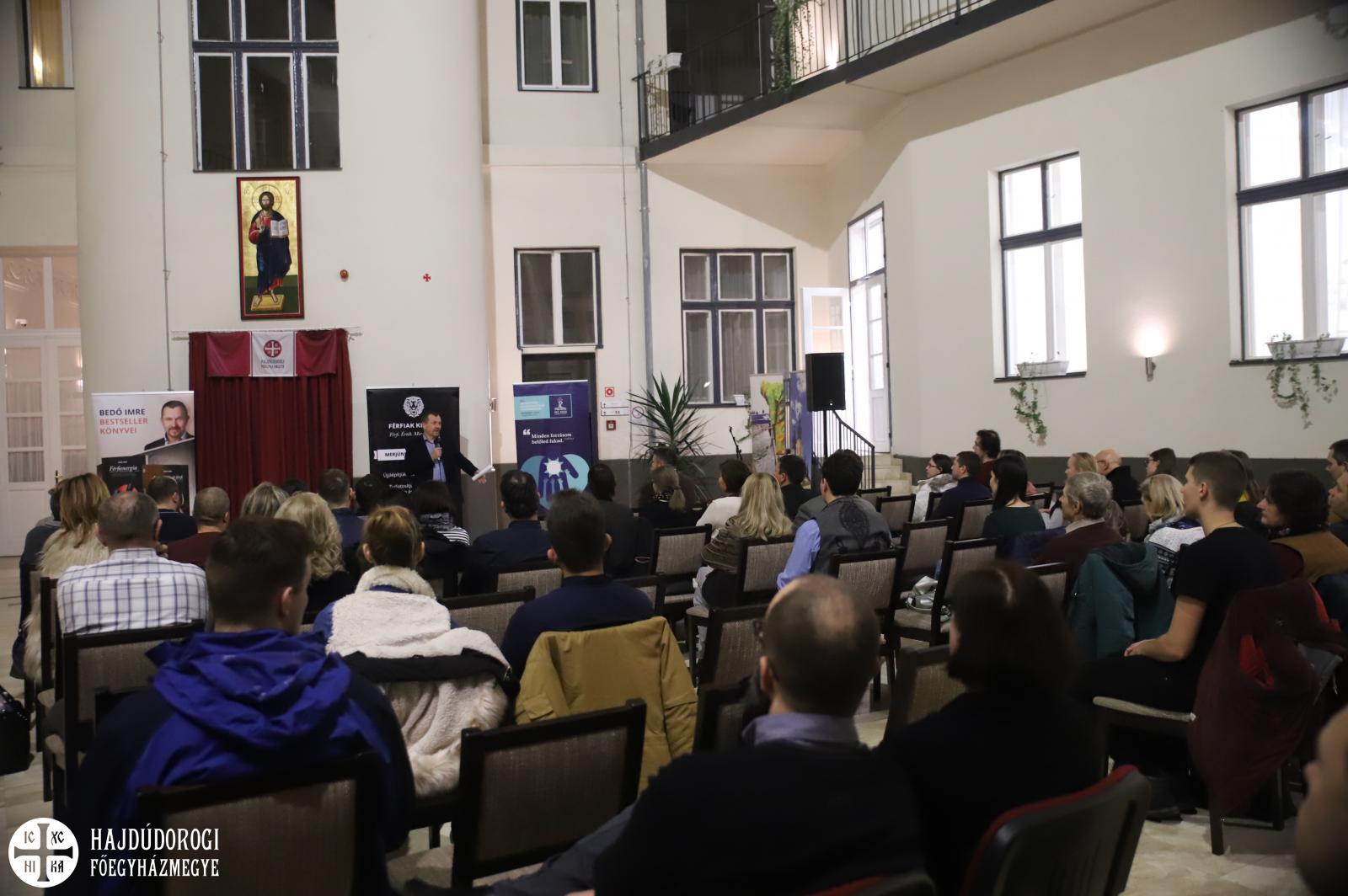 „Egymás kedvéért születtünk”, most ezzel a címmel tartott előadást a Metropóliai Hivatalban. Mint elmondta: minden embernek a legmélyebb vágya a kiegészülés, a kiteljesedés. Teremtettségünk nyomán mélyen belénk van kódolva, hogy ezt egyedül nem tudjuk elérni. A legteljesebben, legmélyebben ezt egy párkapcsolatban tudjuk megtapasztalni, amikor a férfi és nő mindenféle szempontból képes arra, hogy önmagát megtartva egy nagyobb teljességre jusson. De mint tudjuk, ez a hétköznapokban nem olyan egyszerű. Sőt!