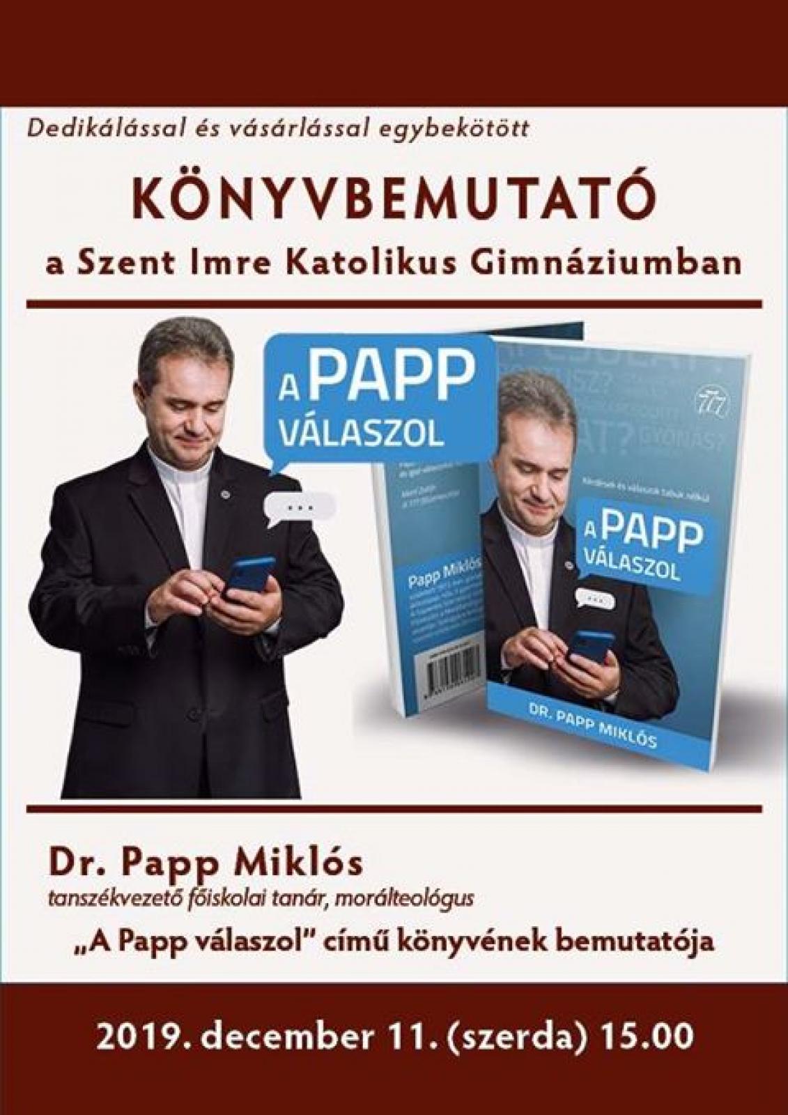 A napokban jelent meg Papp Miklós atya, morálteológus új könyve a "A Papp válaszol címmel". Ennek bemutatóját szervezték meg december 12-én 15 órától Nyíregyházán, ahová várják az érdeklődőket!